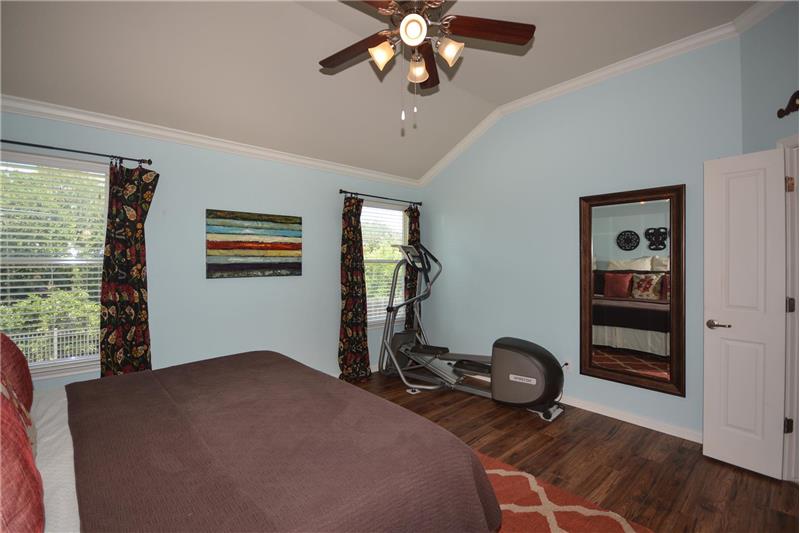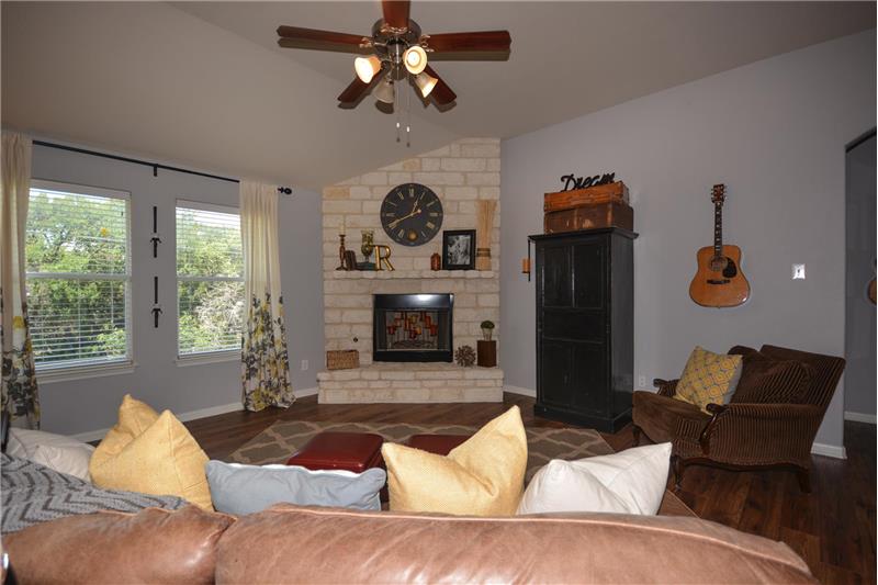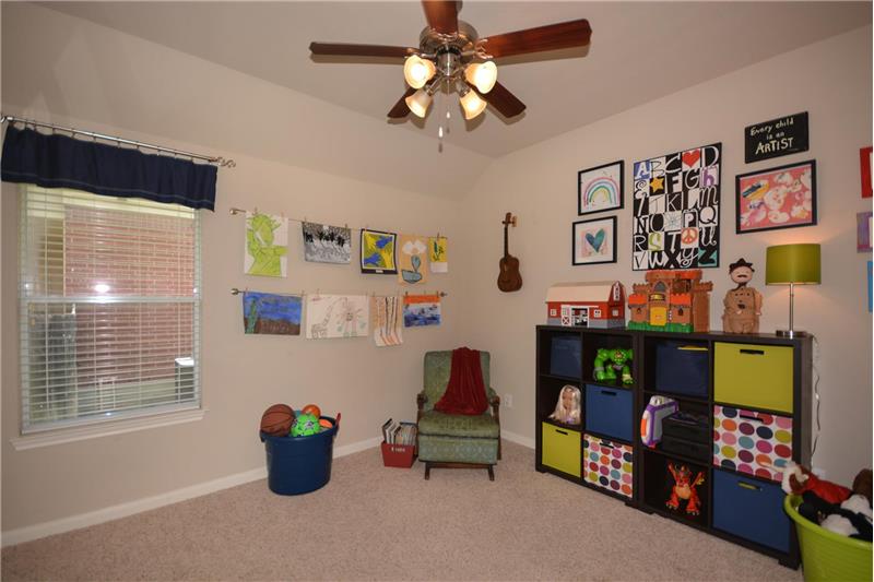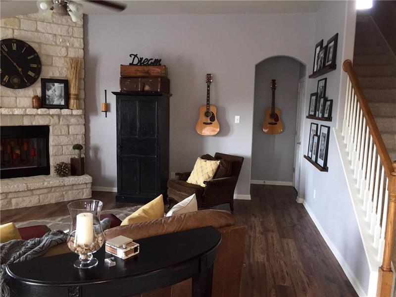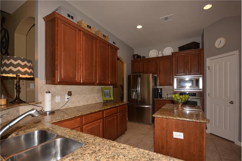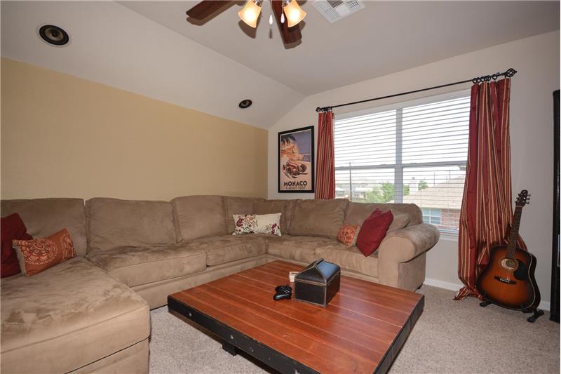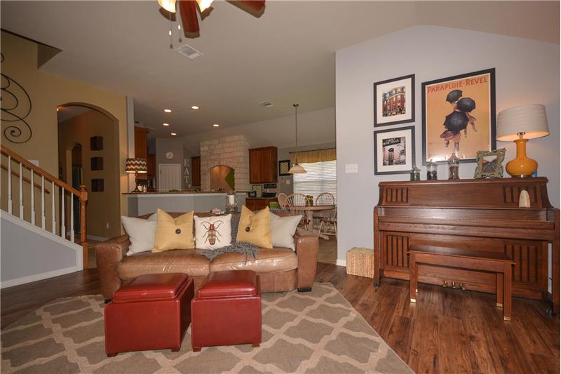 Charming well kept 4 bedroom home with 2.5 baths plus a Study, backing on to a Greenbelt. All bedrooms are downstairs, only the game room is upstairs. Island kitchen features granite counters, gas cook top and stainless steel appliances. Open fire place in the family room. Laminate wood floors in the family room, master bedroom, study, dining room and hallway to bedrooms 3 & 4.
