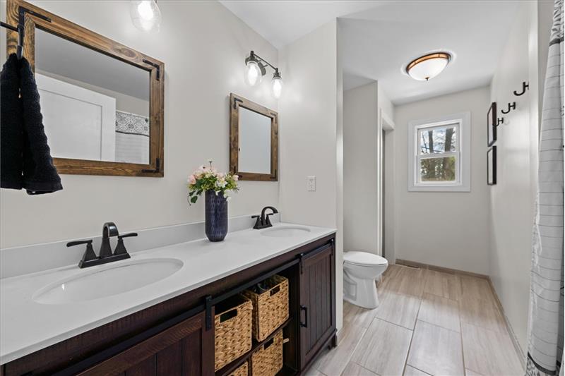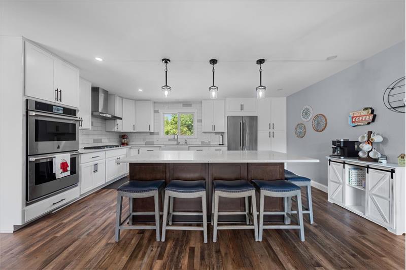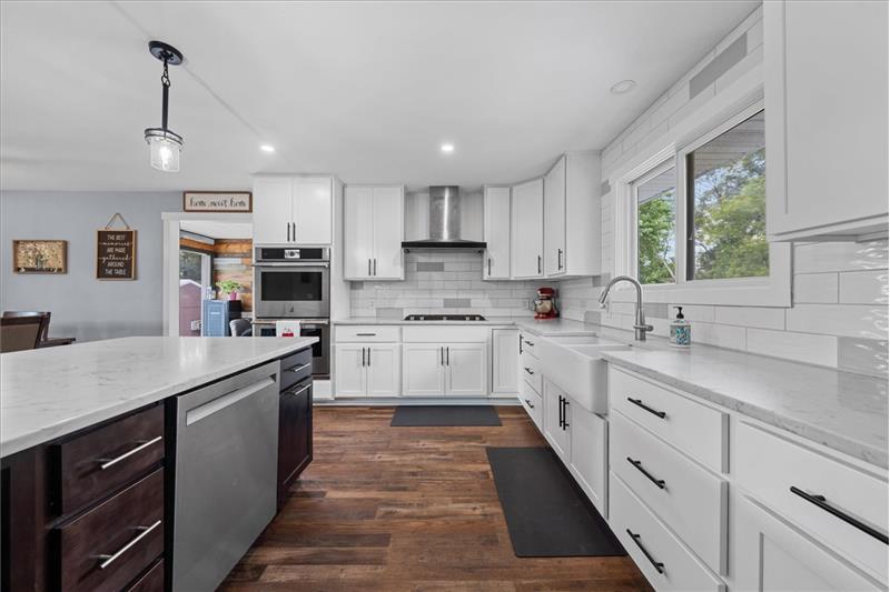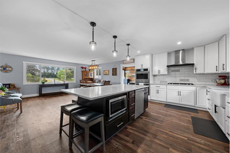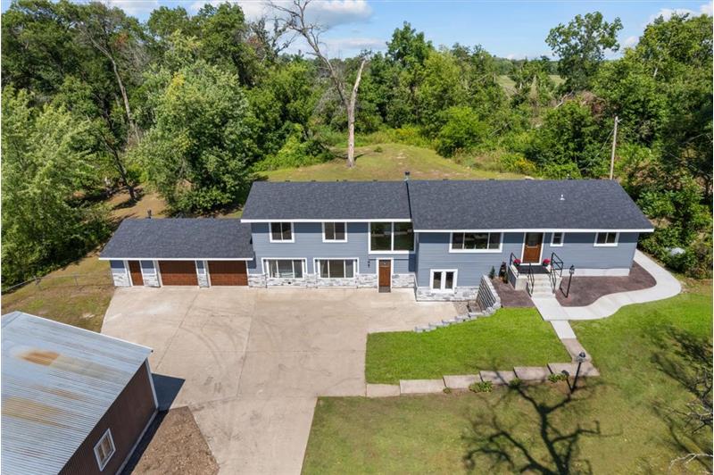 Completely renovated inside and out with over 4,000 finished sq ft on 3.5 acres! New roof, siding, and Marvin windows (last 5 years), plus a brand new furnace and A/C in 2024. Spacious open-concept kitchen, dining, and living area features a center island, stainless steel appliances, cooktop with double oven, and plenty of natural light. Main level offers 4 bedrooms, including a 24x14 primary suite with walk-in closet and private bath with tile floors, separate tub, and shower. Lower level includes a large family/rec room, 5th bedroom, wet bar with sink, and a separate studio apartment—ideal..