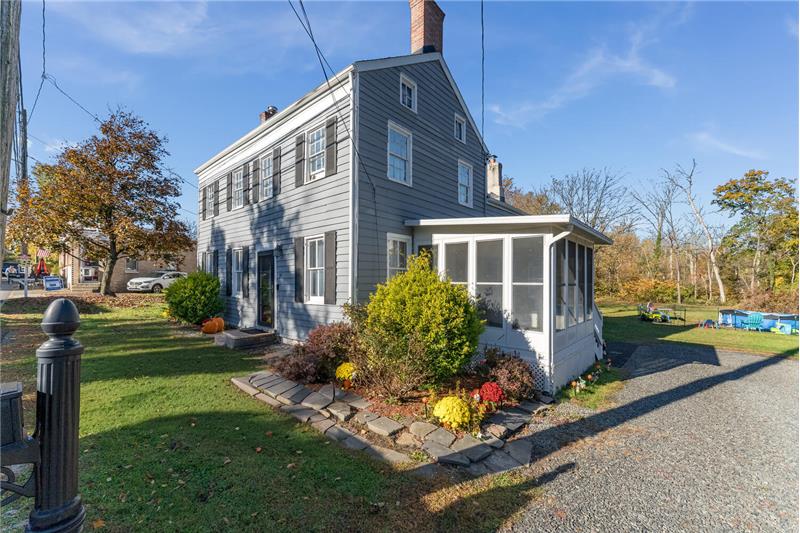 This charming 1830s colonial home is fully updated with modern conveniences, while preserving historic details that evoke early American roots: ceiling beams and original pumpkin pine floors, and a cozy wood burning fireplace . Renovated kitchen, heat & central air, and the advantages of public water & sewer. Enjoy a sunroom leading to the yard, and also a bright laundry/mudroom with access to private patio. Level lot, nice yard with plenty of play space.