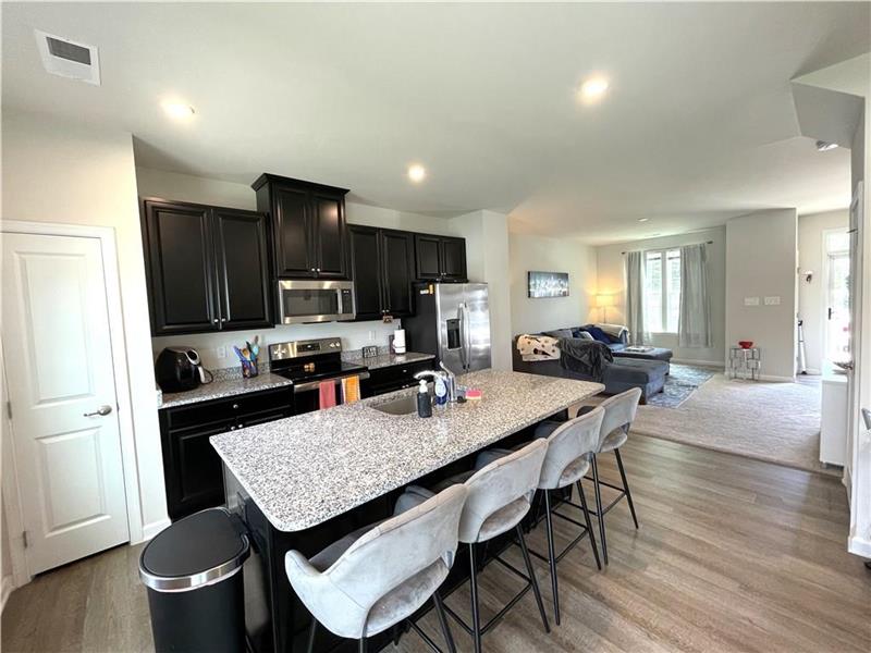 Only a few years young, this townhome is worth adding to your must-see list. This well-maintained home offers an open, nicely sized living room which flows gracefully into the kitchen and dining area. The welcoming kitchen boasts raised panel cabinets with crown molding at the built-in microwave cabinet, granite counters, and a robust island with bar-height seating. The kitchen and dining area offer plenty of natural lighting via puck lighting and sliding glass door to the patio. Three bedrooms and laundry area are on the second level. Call Today to see more and for more info - 804-354-6000.