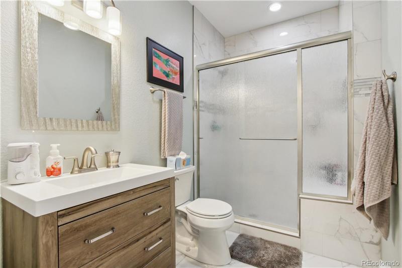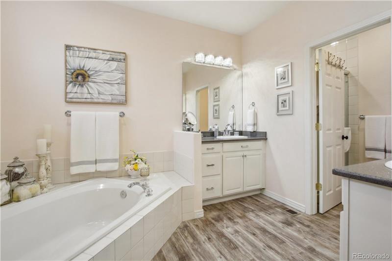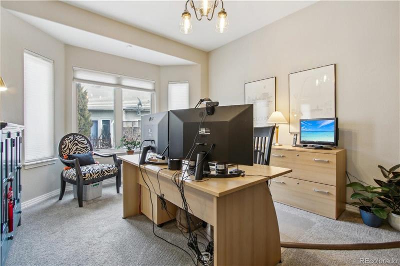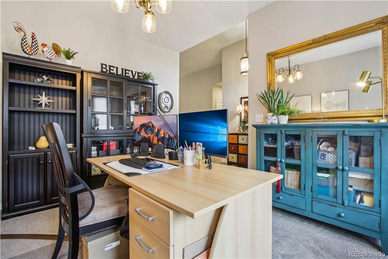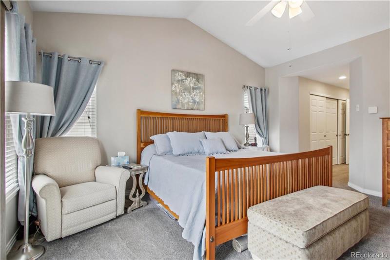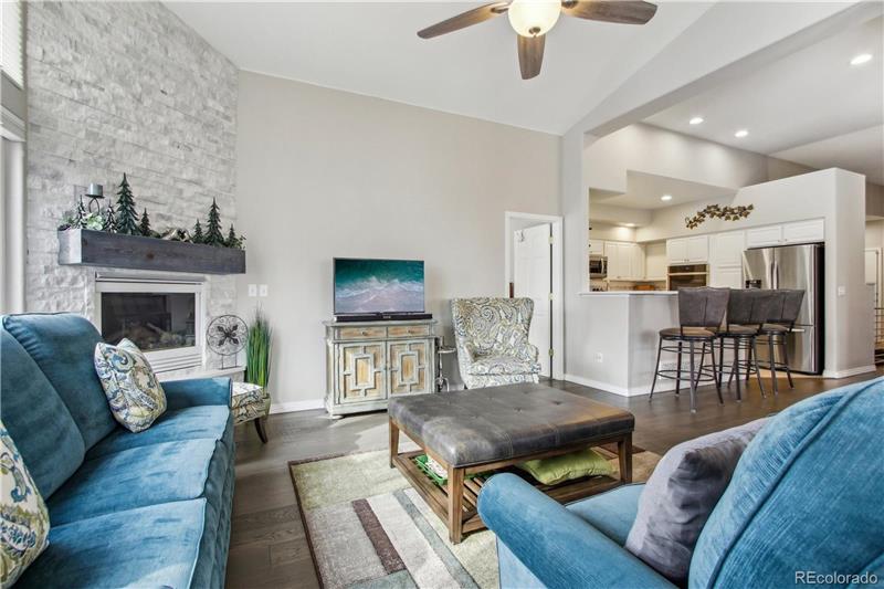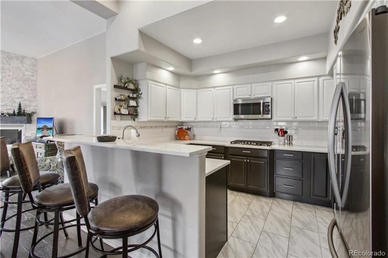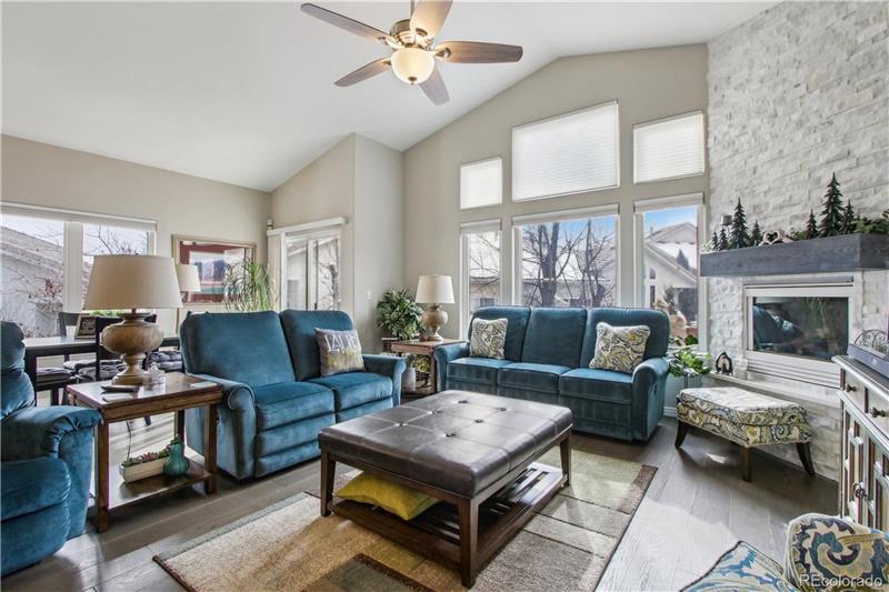 Well maintained with many quality upgrades, this patio home is located in a private gated community two blocks from Bear Creek Park. The main level has vaulted ceilings and south facing windows that provide plenty of natural light. The main floor features an updated kitchen with quartz countertops, gas range and stainless-steel appliances. The living room is open to the kitchen and dining areas and has a gas fireplace. The large primary bedroom with a 5-piece bath has a sliding door to access an outdoor patio. The main level also includes a second bedroom, a 3/4 bathroom and an office space.