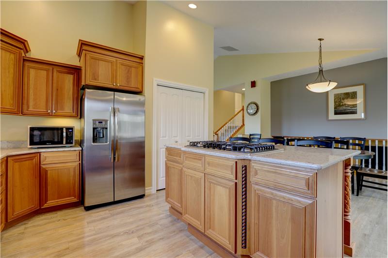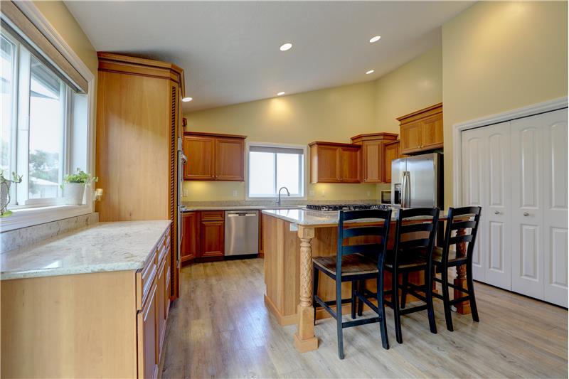 This well kept custom built home has Columbia River gorge views from many vantage points. Enjoy the beauty of the gorge from the primary suite, kitchen, living room and the front porch. There is a heater on the porch so you can enjoy the outdoors on those chilly days. The vaulted ceilings and spacious open floor plan with LVP flooring on the main level is great for entertaining. The kitchen/dining area is a large lovely space with custom cabinetry, granite countertops and yes you can see the view from the kitchen window too.