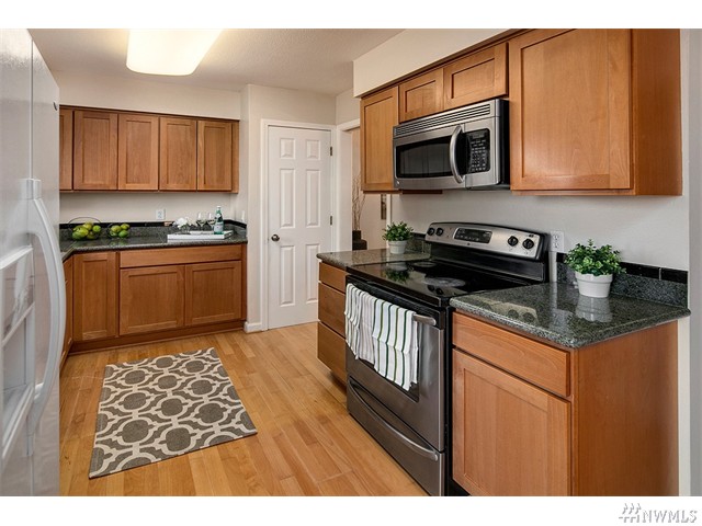 Beautifully remodeled town home. Beech Kitchen cabinets with full extension drawers and shelves, stainless steel appliances and granite counters. Nice master suite with shower and 2 walk-in closets. New carpet in living, dining & bedrooms. Hardwood floors in hall, family room, kitchen and tile in baths. Peek-a-boo view of the lake. Great neighborhood with community pool, Club House, tennis courts, playground and RV parking as available. Conveniently close to Microsoft, shopping and bus. To see every home available go to www.EastSideLuxuryLiving.com