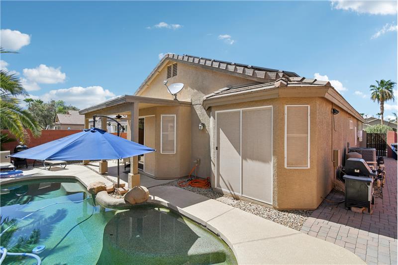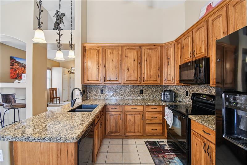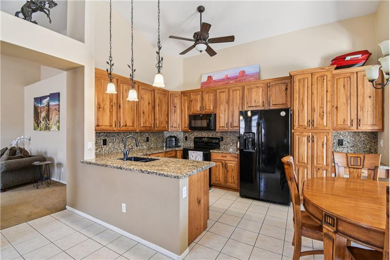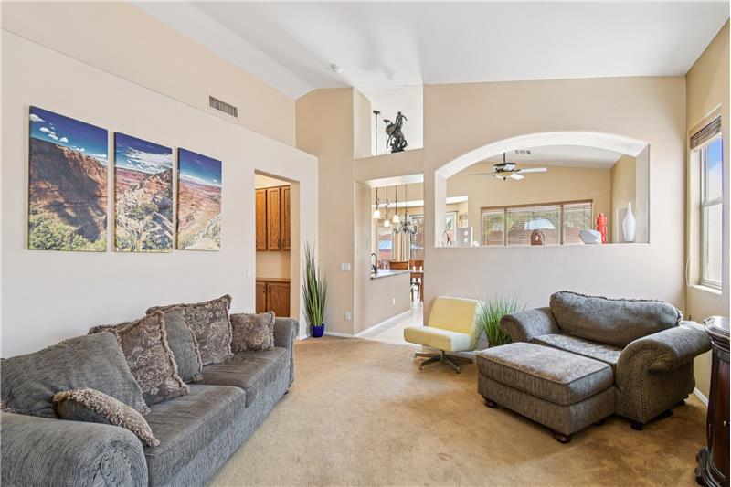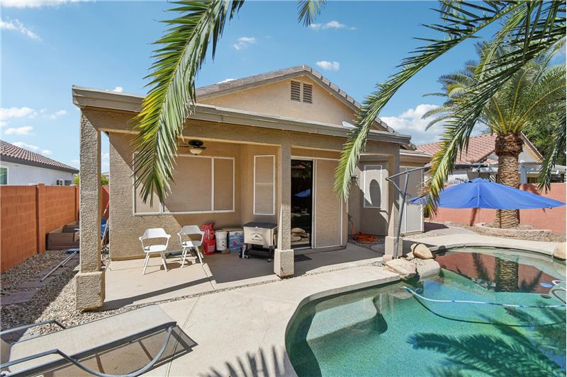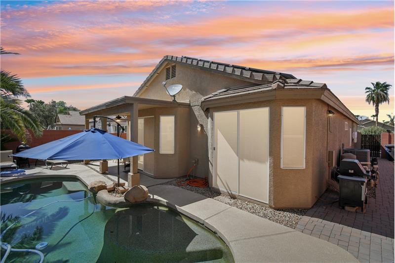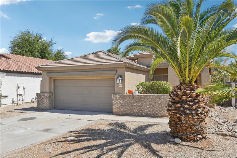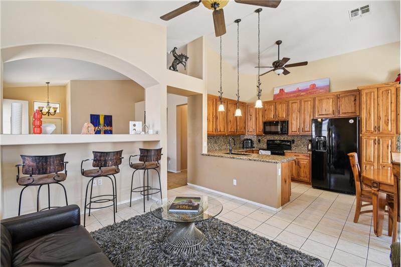 Welcome to this charming home in the beautiful Greenfield Lakes community of Gilbert. This cozy home features 3 bedrooms and 2 baths, soaring vaulted ceilings throughout, a family room off the front entrance as well as a second living space next to the kitchen. The kitchen is a dream with granite countertops and beautiful oak cabinetry and a built in business center. The master bedroom features dual master closets, dual vanities, and a separate exit to the backyard. The backyard is an entertainers oasis with natural desert landscape and palms, a covered patio, and a sparkling pebbletec pool.