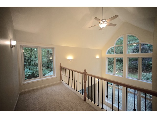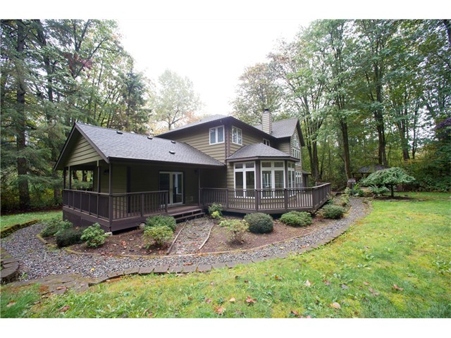 Pride of Ownership shows in this immaculate 3BR, 2.75 bath, custom built home. Beautifully landscaped 1.2 acre wooded lot! Spacious living room w/grand cathedral ceilings, fireplace & dramatic floor to ceiling windows. Chef’s Kitchen w/slab granite counters, solid wood cabinets & stainless appliances. Wired media room w/wet bar.Freshly painted interior w/new carpeting & flooring on main level. Relax & enjoy the entertaining-sized deck overlooking large backyard w/ plenty of room for pets & play.
