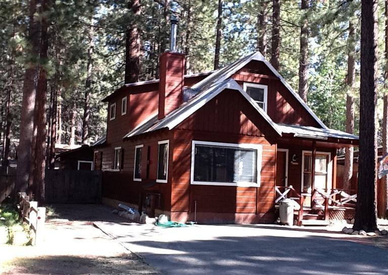 You will love this charming Tahoe Chalet. This well maintained home features lots of knotty pine, wood beamed ceilings, open floor plan with picture windows to let the views & the sunshine in. The Sunny kitchen overlooks the very spacious Living Room & Den. Master Bedroom & Bath are on the lower level. Upstairs loft (Bedrooms 2 & 3) is exceptionally large and, will sleep 6 or more. There is an adjacent 2nd bath. In addition, there is a service porch for washer & dryer with a large storage cabinet & more storage shelves. The backyard is nestled under the pines, with a storage shed & a double ga