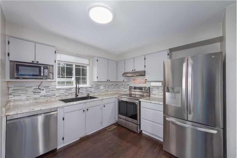 Welcome to this contemporary 4 bed, 2 bath rancher that blends comfort and space, inside and out! The beautifully updated kitchen features stainless steel appliances, granite countertops, fresh cabinetry, and a modern tile backsplash. Enjoy two spacious living rooms—perfect for entertaining, relaxing, or creating a flexible layout to suit your needs. Step outside to a fully fenced backyard with a large deck, ideal for outdoor dining, lounging by a fire table, or hosting summer BBQs. This home is ready to enjoy, inside and out!