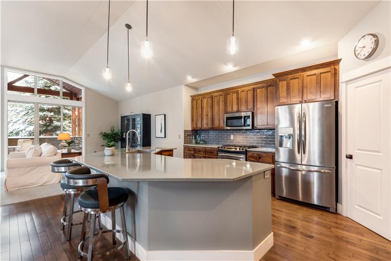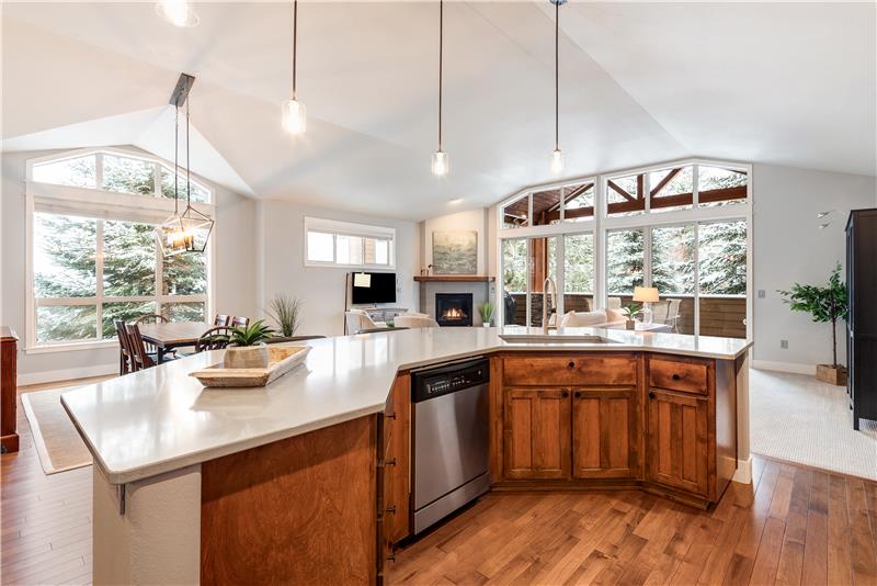 Tucked into a westside neighborhood near Quail Park, this single-level townhome has been beautifully maintained with many updates including new carpet, interior paint, a remodeled half bath, new tile entry, updated laundry room and new solid-surface quartz countertops in the kitchen. The well-designed floor plan of this end unit has a great room with large windows and sliding glass doors that open to a large, covered deck nestled among mature trees. The spacious primary suite has a walk-in shower, soaking tub, walk-in closet and deck access. Two additional bedrooms share a Jack-and-Jill bath.