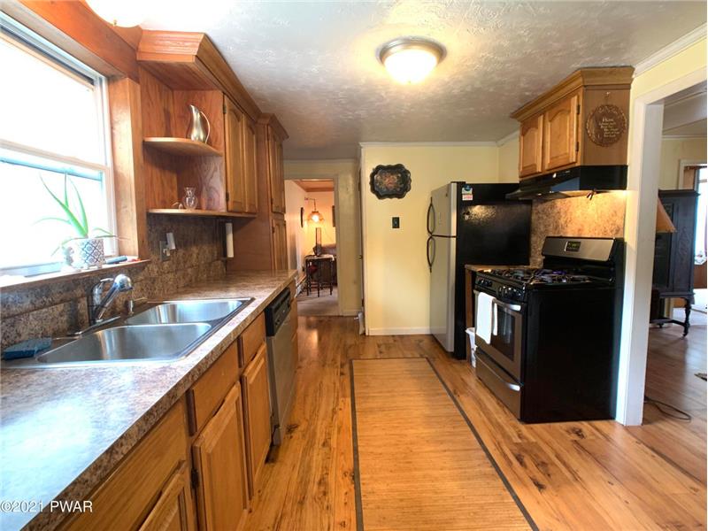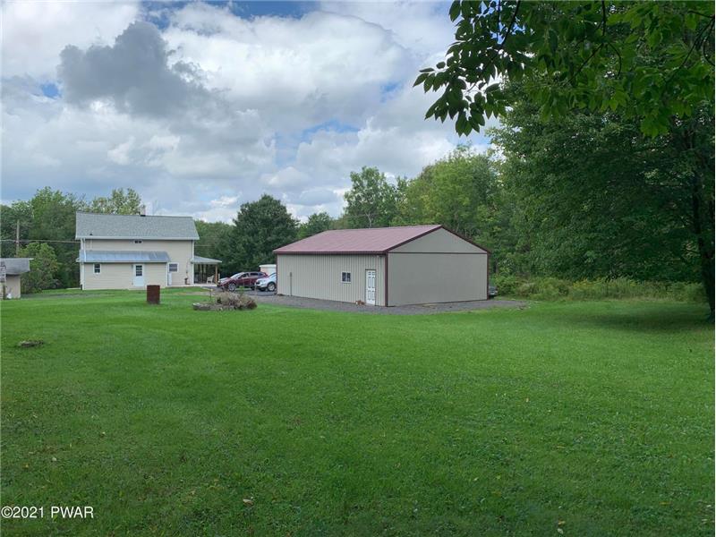 Country home sitting on almost two and a half acres of mostly cleared land with fruit trees, oversized detached metal garage with plenty of room for storage, outbuildings, and a paved drive. This vintage farmhouse still holds its charm with a covered front porch, modern kitchen, two full baths, three bedrooms, den, mudroom, formal dining room and spacious living room. Located in the beautiful northern Pocono Mountains, just minutes from fabulous Lake Wallenpaupack.