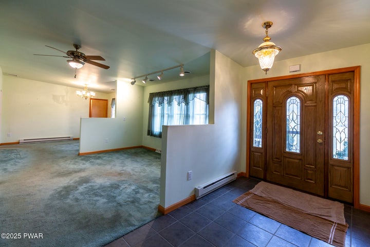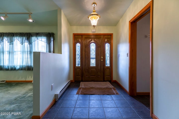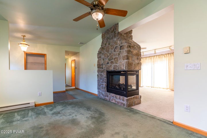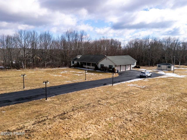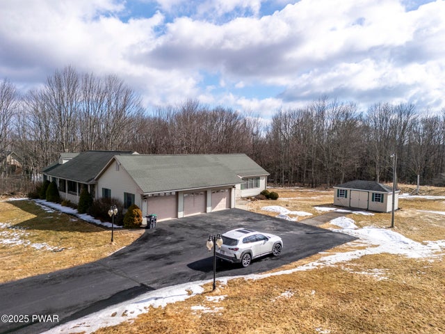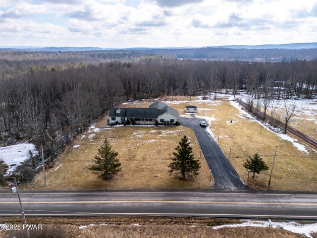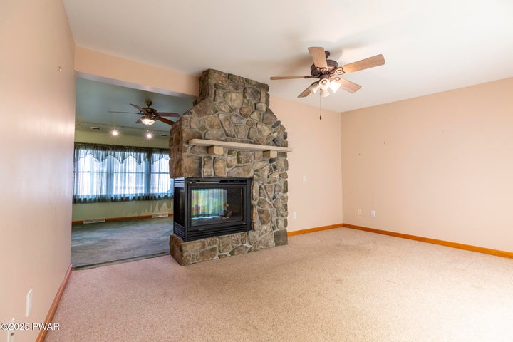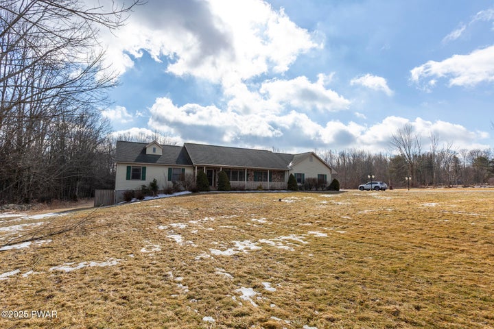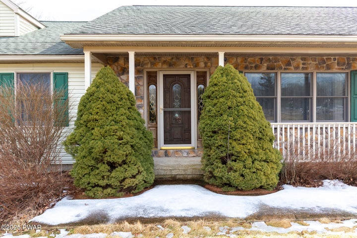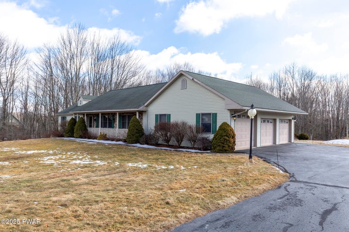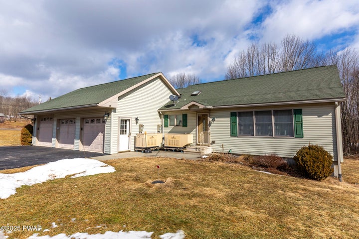 This beautifully designed custom home offers an exceptional living experience with 4 spacious bedrooms, 4 bathrooms, and an in-law suite for added privacy and comfort. Perfectly situated in the sought-after North Pocono School District, this home blends luxury, functionality, and versatility. The main living area boasts ample room layout, with three stunning propane stone fireplaces that add warmth and elegance throughout. The spacious kitchen includes a cozy breakfast nook, perfect for casual dining, while the adjoining formal dining area offers an ideal space for gatherings. The expansive ma