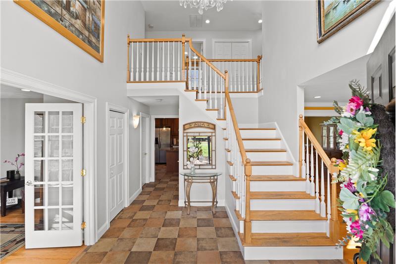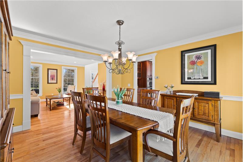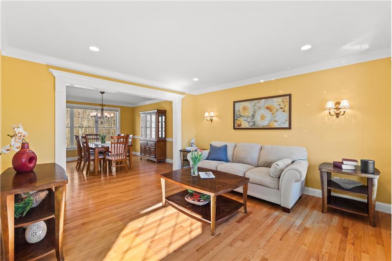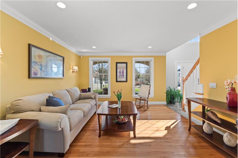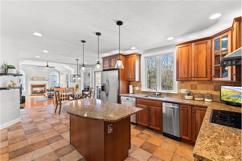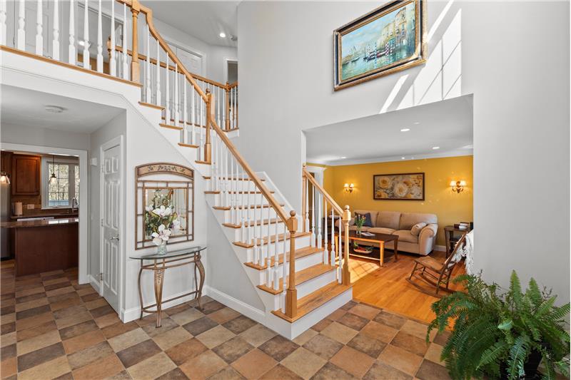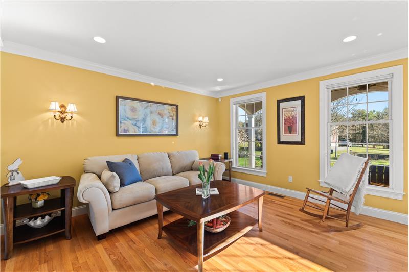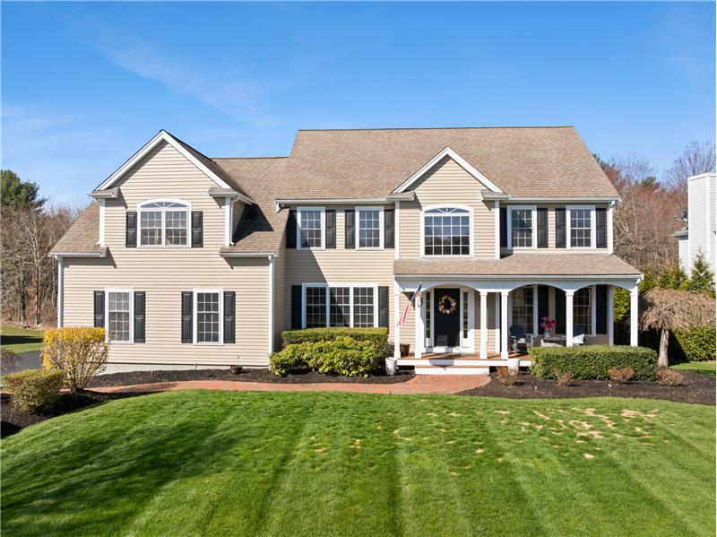 Experience refined living in sought-after Tanglewood Estates. This sun-filled home offers an open floor plan with hardwood floors throughout the first level. The oversized garage fits two car lifts—ideal for storing up to four vehicles. Enter through the mudroom into a chef’s kitchen with granite counters, stainless steel appliances, center island, and elegant lighting, flowing into the spacious family room. Enjoy formal dining and living rooms with classic hardwoods. Relax outdoors on the rear deck or charming farmer’s porch. A full walk-out lower level includes a media room, gym .