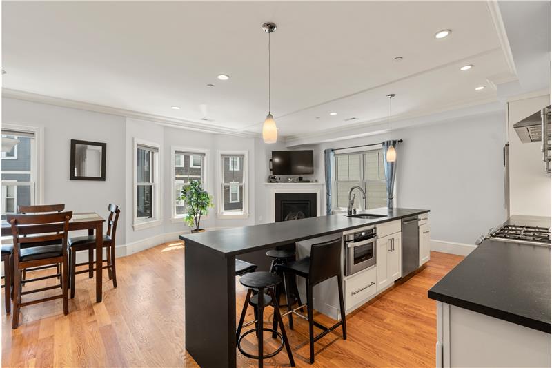 This rarely available 2016 new construction, 2 bedroom 2 full bathroom in one of Boston's hottest neighborhoods, bordering on the South Boston/Dorchester line is now ready for it's new owner! Located in the Polish Triangle, this unit features high end finishes with an open floor plan, quality kitchen cabinets with oversized island, quartz counters, and BOSCH stainless steel appliances. Other features include hardwood floors, Sonos wireless surround sound system with Bluetooth capabilities, private deck, gas fireplace, in-unit washer & dryer, deeded parking, bountiful closet space throughout,