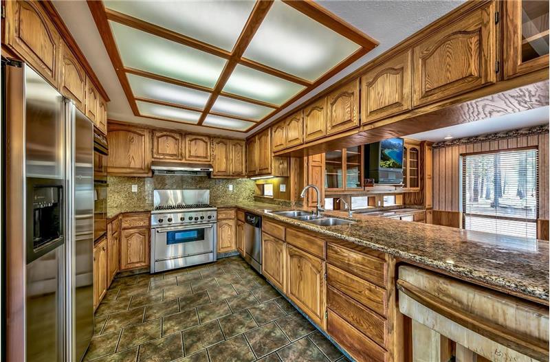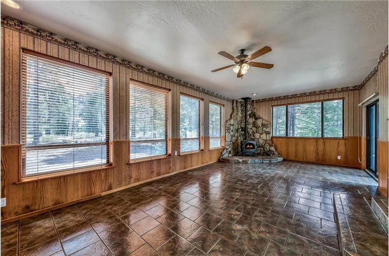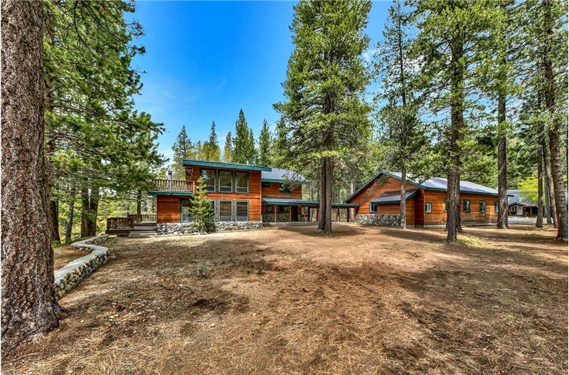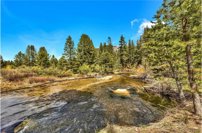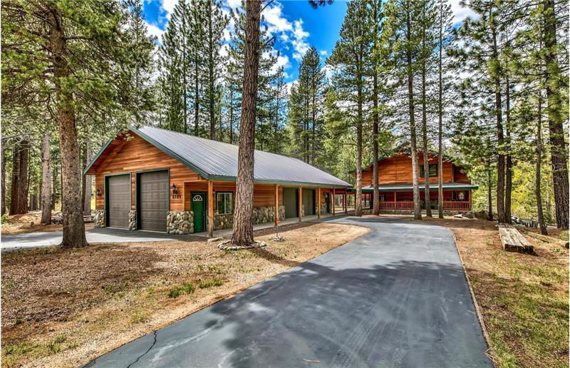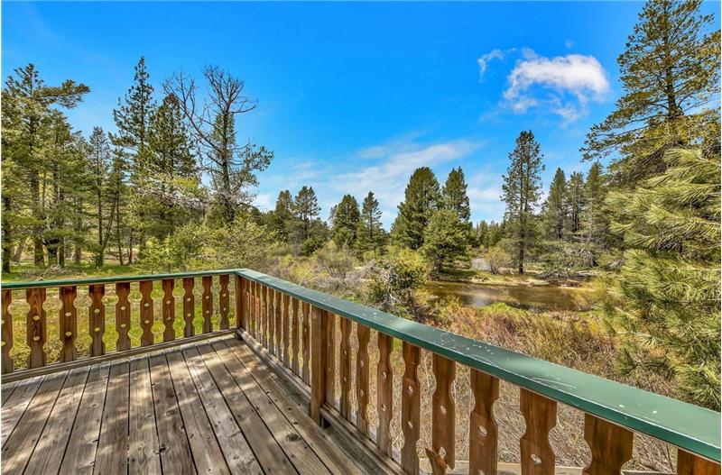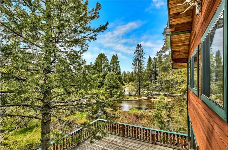 True Riverfront home on 1.29 Acre parcel offers incredible setting, views and privacy + an unheard of detached 2000 sq. ft. garage space with 2 front RV doors plus two side garage doors. Contractors collectors dream space. Covered & lighted walkway from garage becomes the covered wrap around porch & walkway to the front door. You hear, see & feel the beauty of the Upper Truckee River as you enter. Welcome home!