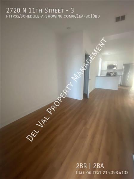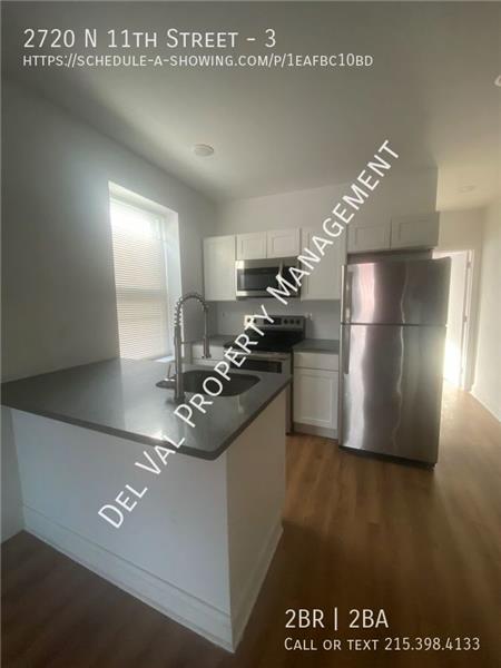 About this Property: Modern Elegance on Top Floor - 2-Bedroom Apartment in Upper North Philadelphia is For Rent 2720 N 11th Street, Unit 1, Philadelphia, PA 19133 $1,165/month plus utilities 2 Bedrooms 2 Bathrooms Street parking 2 well-appointed bedrooms providing both comfort and versatility Master Bathroom and additional bathroom in hallway Immerse yourself in the sleek design of a modern kitchen with contemporary fixtures, making meal preparation a delight Revel in the timeless allure of hardwood flooring throughout the entire home, creating a seamless and stylish living space