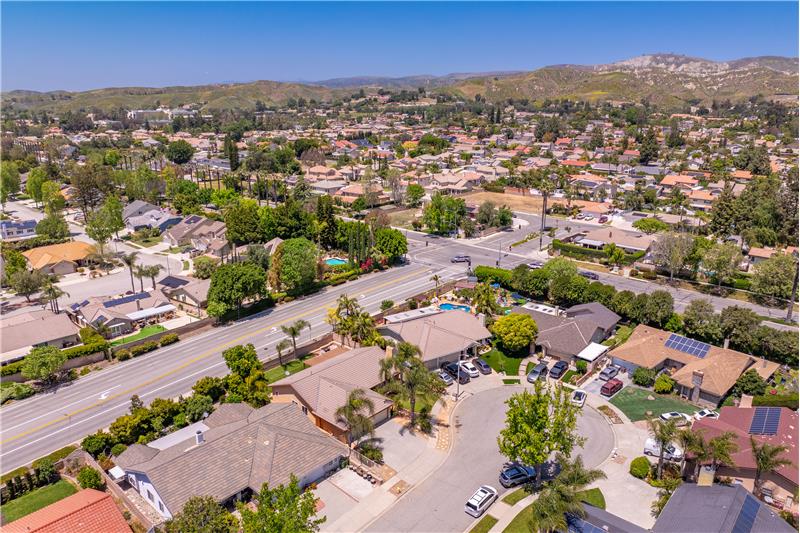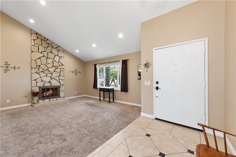 Welcome to this inviting single-story cul-de-sac home located in the desirable Summerfield community of central Simi Valley north of the freeway, featuring low-maintenance desert landscaping highlighted by palm trees and rock stepping stones. This spacious residence boasts 4 bedrooms, 2 baths, and 2006 sq. ft. of comfortable living space, situated on a generous 8,173 sq. ft. lot. Upon entering, you'll be greeted by a large step-down living room adorned with a front picture window offering natural light and a striking stone fireplace that extends from floor to ceiling.