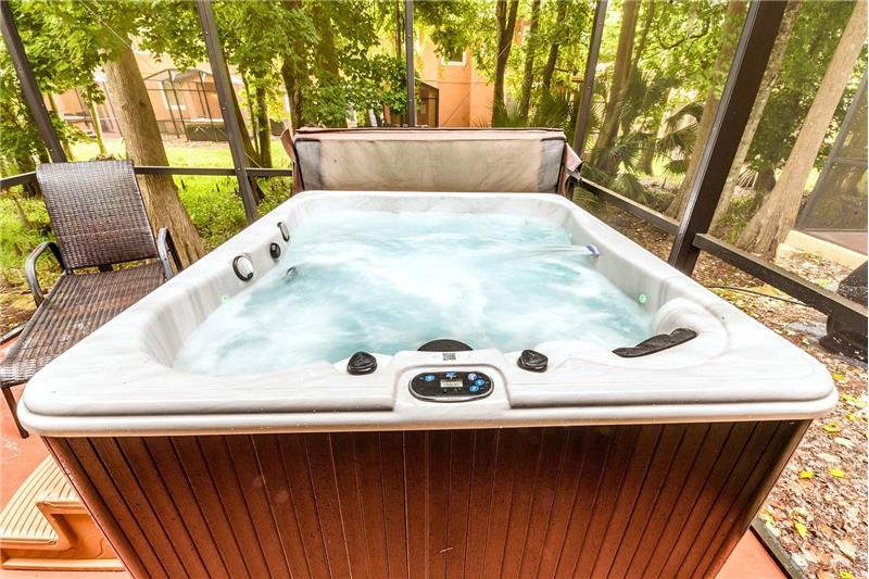 Turnkey, fully-furnished townhome in gated Regal Oaks Resort, built 2008, 1,440 sqft. Proven short-term rental. Future bookings & rental site convey. Open-concept ceramic tile main level; granite kitchen w/ stainless appliances (2021), island. King primary upstairs en-suite; 2 add'l beds (1 down) w/ full baths. New upstairs carpet 2022 ($2,913). Screened lanai w/ 2023 premium Jacuzzi ($6,727) – WiFi/Bluetooth, LED lights, waterfall. Interior paint 2023; exterior/porch 2024. New hot water heater Jan 2025 ($1,320); GE W/D 2024; Trane AC/UV 2019 ($4,620); NEW 2024 ROOF by HOA. Resort ameniti ...