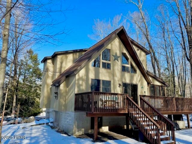 Nestled in the picturesque, amenity-filled community of The Hideout, this stunning 3-bedroom home offers the perfect blend of comfort and modern elegance. Boasting an open floor plan with soaring cathedral ceilings, the central living area is bathed in natural light, creating an inviting and airy atmosphere. Whether you're relaxing by the cozy fireplace or enjoying the peaceful surroundings from the deck, this home is a true retreat in a serene, wooded setting. Don't miss the chance to own this beautiful home in one of the most sought-after communities!