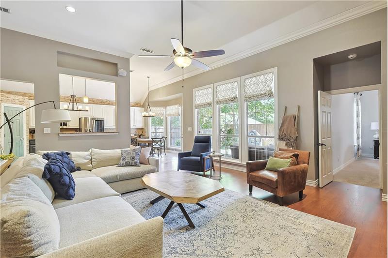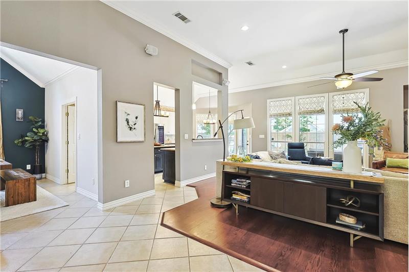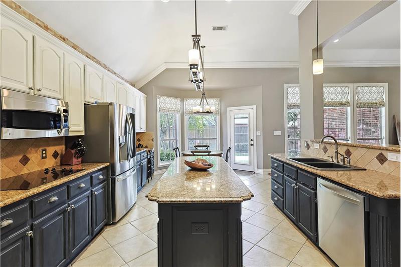 Stunning single story home in Flower Mound! Beautifully updated from floors to counters! Four bedrooms, three full baths, bright office, open concept. A warm and inviting space with the updates you deserve. Designer touches throughout the home from the light fixtures, paint colors, dry stacked stone accent walls. Chef's dream of a kitchen with granite counters, double ovens, stainless appliances, large center island. All rooms are spacious and a delight to the senses. The backyard is a lush oasis with plenty of space for pets and humans alike. Ideal south Flower Mound location! Don't wait!