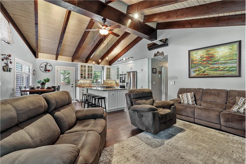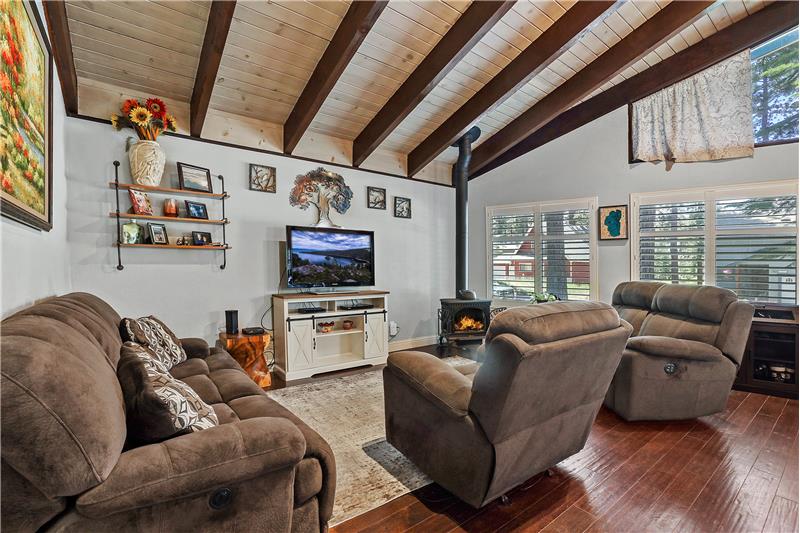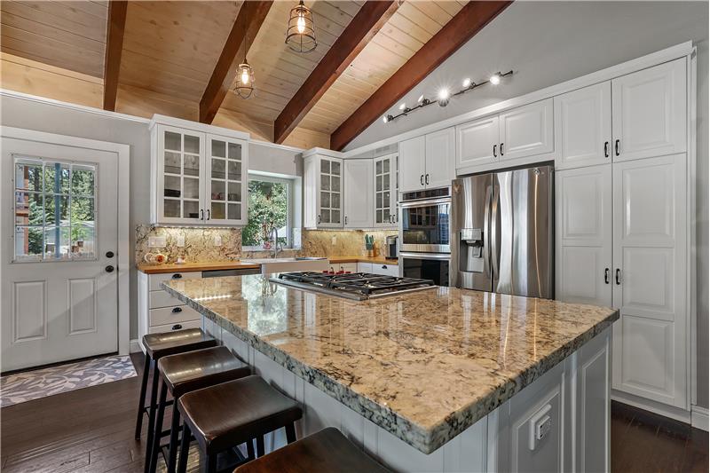 Introducing a stunning residence in the desirable Highland Woods neighborhood centrally located to all that Tahoe has to offer with easy access to outdoor recreational activities all year long. Step inside to discover the towering open beam ceilings, open concept living with a spacious living area that offers a gas fireplace and large windows with abundance of natural light. The gourmet kitchen is a chef's dream, equipped with stainless steel appliances, double ovens, 5 burner gas range & ample counter space with an oversized island.