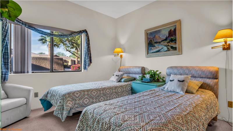Incredible and desirable interior location. Nicely appointed vacation condo. Peaceful setting with views all around: pool/ green belt, fairway and mountian views. Located in the full service, year-round Resort of Desert Princess Country Club.