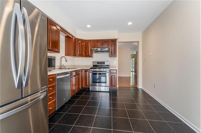 Freshly painted and sparkling clean townhouse with a great floorplan, including loft-like living room with gas fireplace. Well-maintained with wood floors on main level and new carpet for stairs & second floor. Updated kitchen and bathrooms. Private, fenced outdoor patio space. Primary bedroom with luxury bathroom and walk-in closet. Full-size laundry in unit. Attached garage and room for extra parking in driveway. Located in desirable Stratton Meadows community, known for proximity to shopping, parks, and commuter options. Amenities include pool, tennis, and clubhouse. Great opportunity!