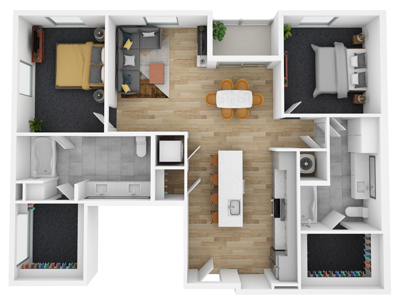 Welcome to a vibrant community where modern living meets comfort and style. These spacious apartments feature open-concept layouts, large windows that flood each space with natural light, and high-end finishes such as sleek countertops, stainless steel appliances, and wood-style flooring. The thoughtfully designed floor plans create an inviting atmosphere that is perfect for both relaxing and entertaining. Residents enjoy a variety of amenities, including a sparkling resort-style pool, a well-equipped fitness center, and beautifully landscaped outdoor spaces for unwinding or socializing w ...