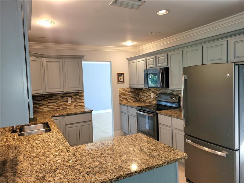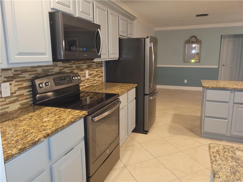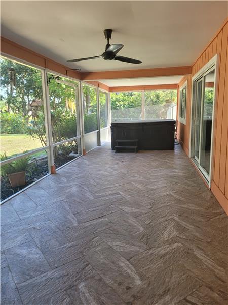 This true gem in wonderful Sandpiper Bay, tis situated on OVER a one-half acre (very hard find!)!! Moreover, Dalhart Waterway drainage/easement in the rear for added privacy and serene birdwatching views! This is a dream property in the highly desirable area of Sandpiper. Spacious and split floor plan features two living room areas and two dining spaces or an alternate space. Kitchen has granite countertops, stainless steel kitchen appliances and window overlooking large screened porch with jacuzzi/hot tub and large fully fenced back yard. SS washer & dryer included in Laundry Room w/ Cabinets
