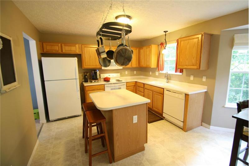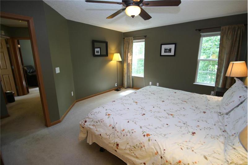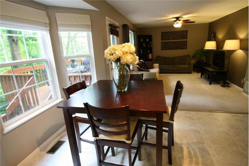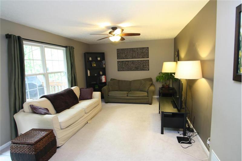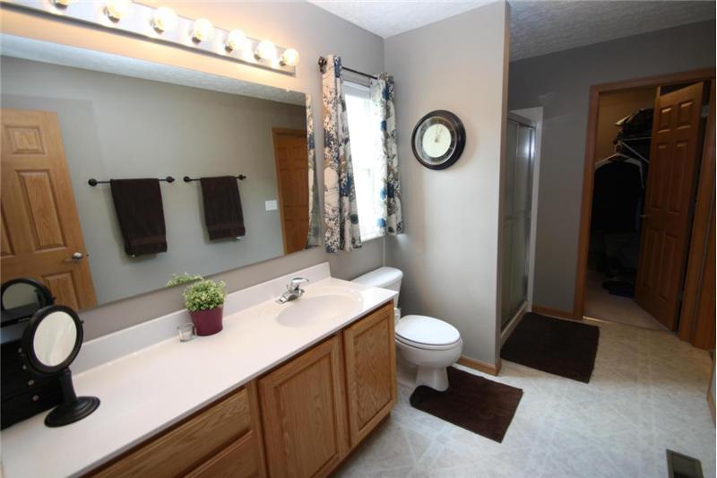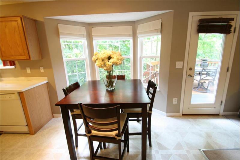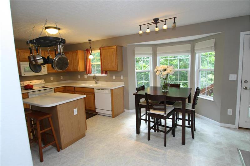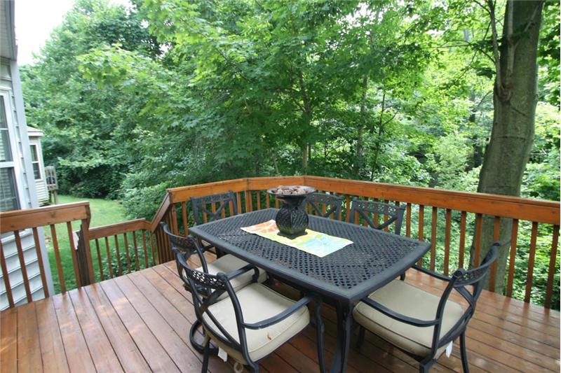 Sun-filled rooms and open floor plan with mature tree wooded ravine yard. Enjoy your center island kitchen with abundance of cabinets & Corian counter tops. 1st floor laundry. Upgraded lighting and hardware. Great floor plan for today's living opens to spacious great room. Relax on your deck backing to mature park like yard and steps to lower level patio & green space. Spacious master suite includes private bath with double walk in closets! All bedrooms spacious with abundance of closet/ storage. Formal dining room. Convenient location- walk to the community park. Radon mitigation system