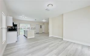 Stunning brand-new construction, single-family home featuring 3 bedrooms and 2 bathrooms. This home offers modern living with an open floor plan, quartz countertops, stainless steel appliances, impact windows, tile flooring throughout and beautiful backyard. Big garage provides ample space, with the option to convert into an additional family room, bedroom or studio. Prime location, conveniently located near expressways, airport and the beach. CO completed. MOVE IN READY.