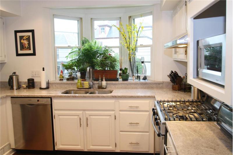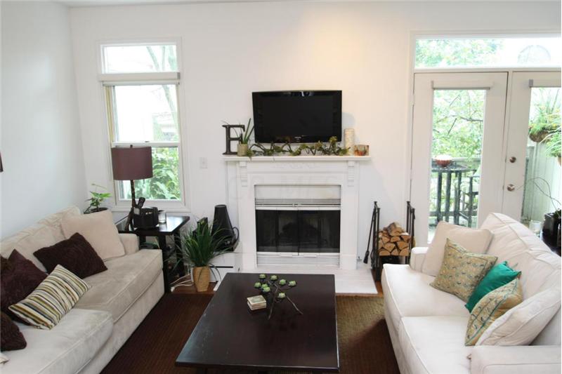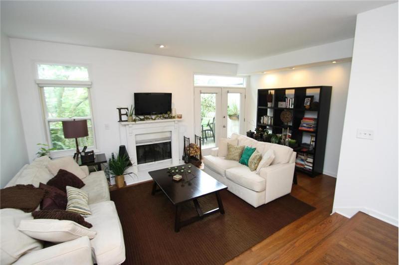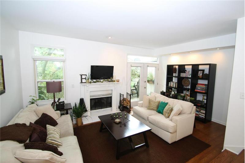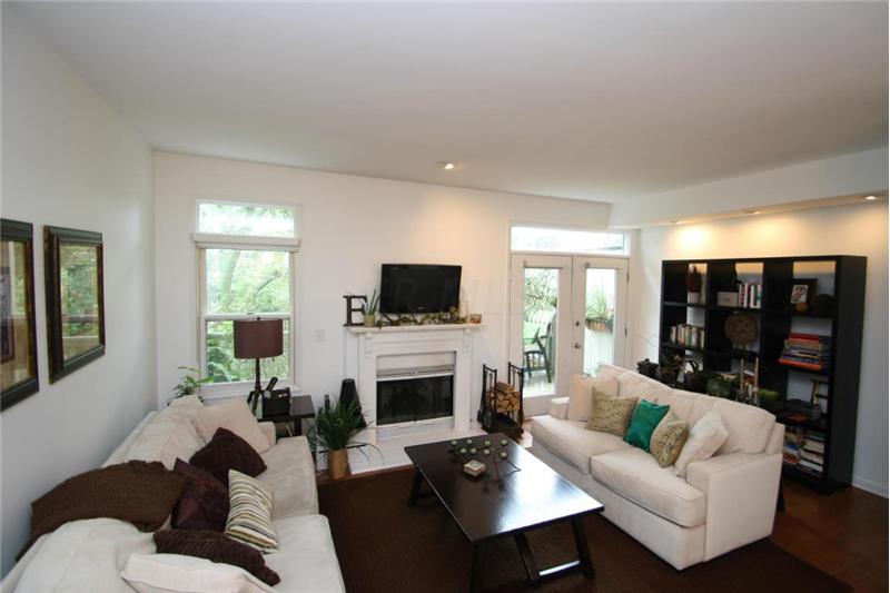 Convenient Victorian village location with attached garage! Architectural paradise of walls of windows, soaring ceilings, lofty views. Lots of character with its gleaming hardwood floors & wood burning fireplace. Updates inc new AC 2013, roof 2007,security system 08, garage door opener 2011. Recently painted. Remodeled kitchen with upgraded Bosch appliances, granite counters, subway tile backsplash. Relax on your upper balcony deck or lower level patio. Lower level partially finished for rec room. enjoy the comfort of living in this 3 full levels of quality living space w/ lots of storage.