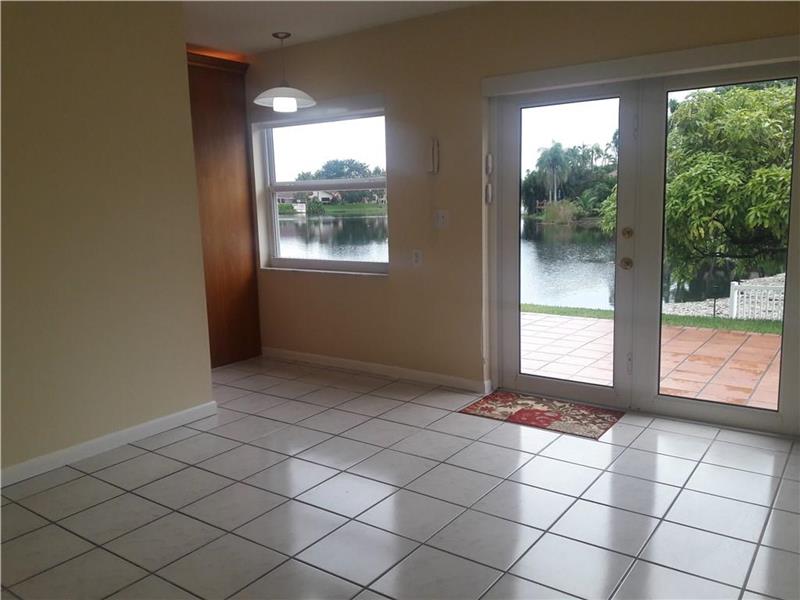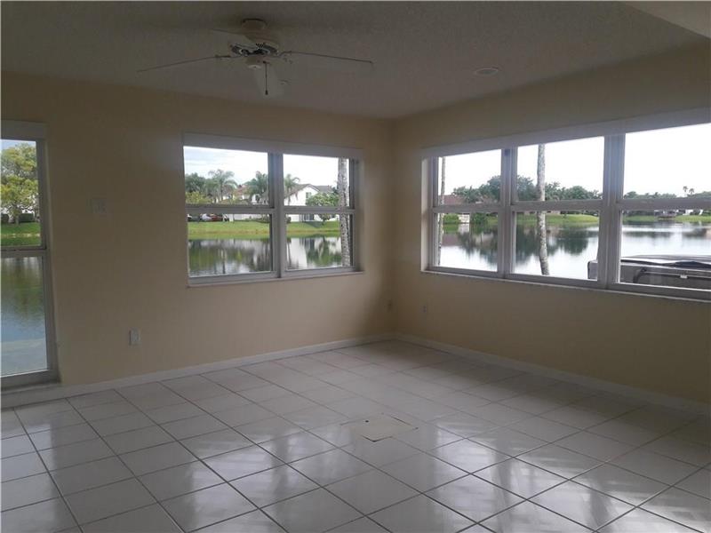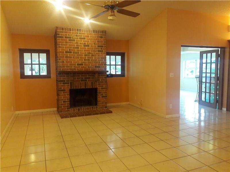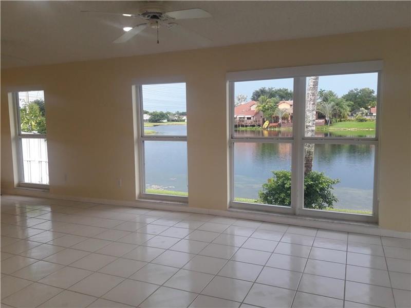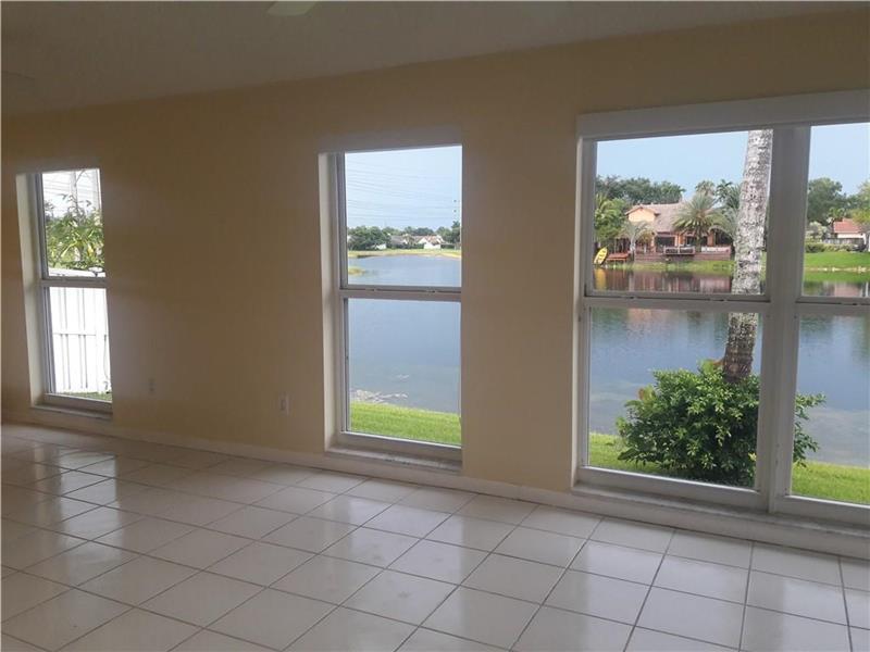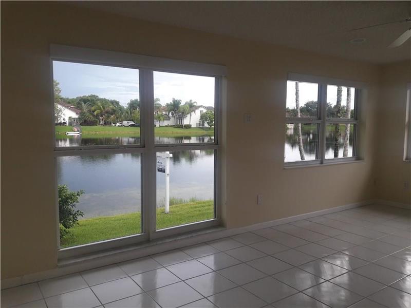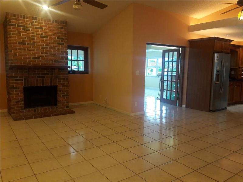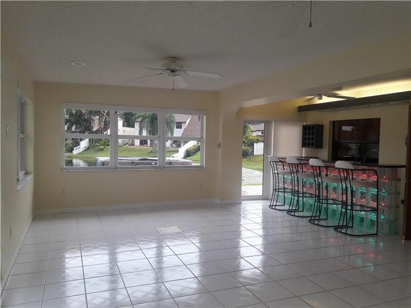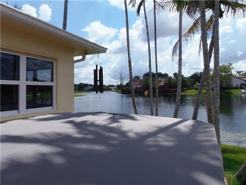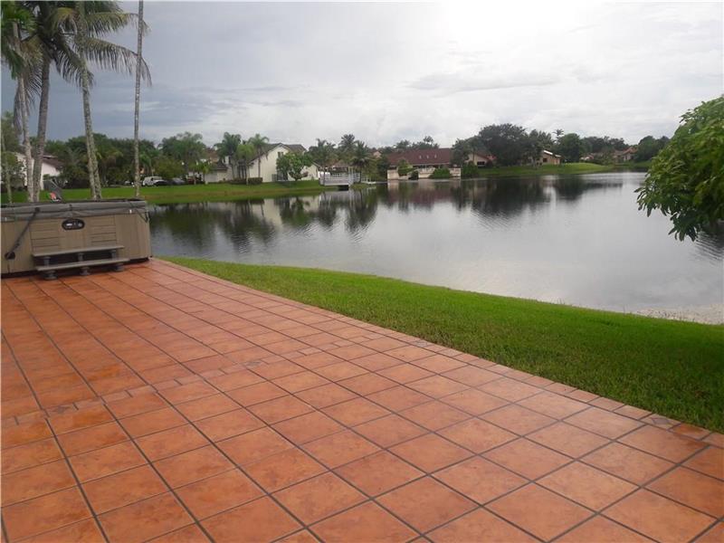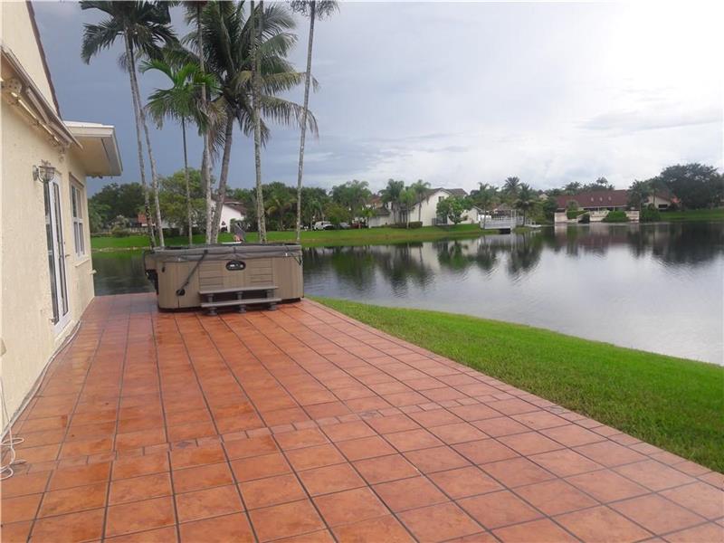Homes for Sale 3/2 Rock Creek Cooper City Florida One Story 3 bed 2 bath home with 1 1/2 car garage. Metal roof has 50 yr warranty. And surrounded on two sides by the LAKE (sprinkler system supplied by lake). Home features an insta heat tank less water heater, working fireplace, remodeled kitchen and baths, fully tiled, HUGE family room with lake views from every window( impact windows & doors thru out) built in bar in family room, generator, freshly painted. Home has side patio with hot tub (as is) and two roll up awnings.. Remember you can always build a pool for your home