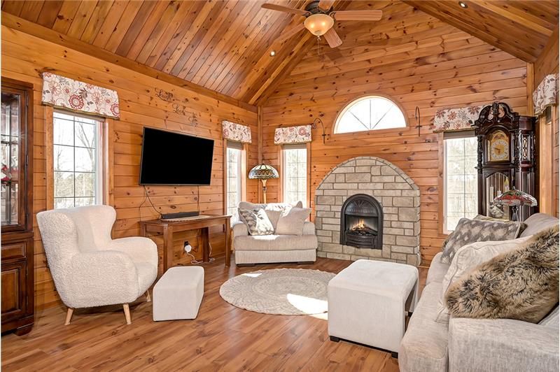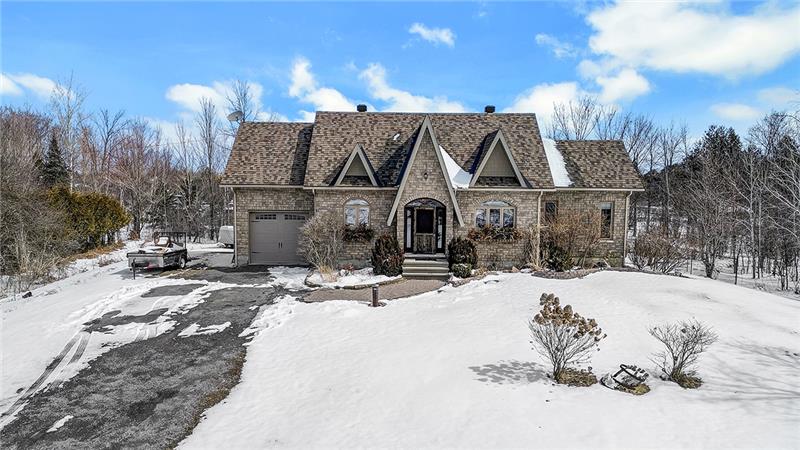 Immaculate 2011 chalet-style home on 1.05 acres in Pakenham! Vaulted pine ceilings, open layout, huge windows, finished lower level, pool, patio, garage, and stunning yard. Move-in ready gem!