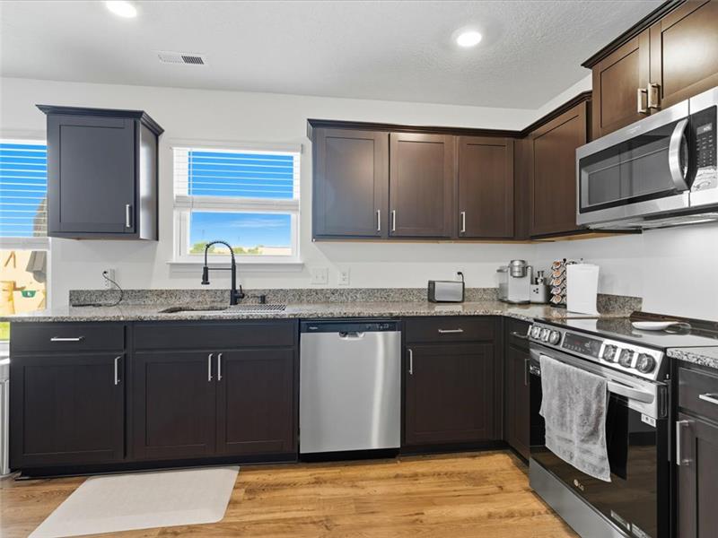 Like new 2024 two-story with 3 bedrooms, 2.5 baths, and 1424 sq ft plus a 420 sq ft garage. Open main level with Mohawk LVP flooring, shaker cabinets, pantry, and smart stainless appliances including fridge and oven. Upstairs features a primary suite with walk-in closet and private bath, laundry, 2 guest bedrooms, and full bath. Vinyl-fenced backyard with patio and views. Just 2 miles to Cherokee Lake access, 2.5 miles to College Square Mall, and 8 miles to I-81.