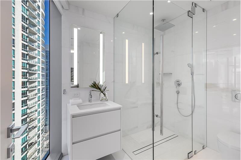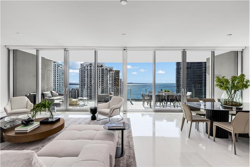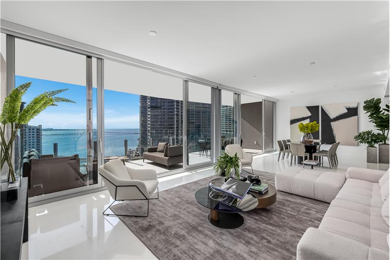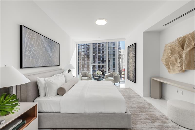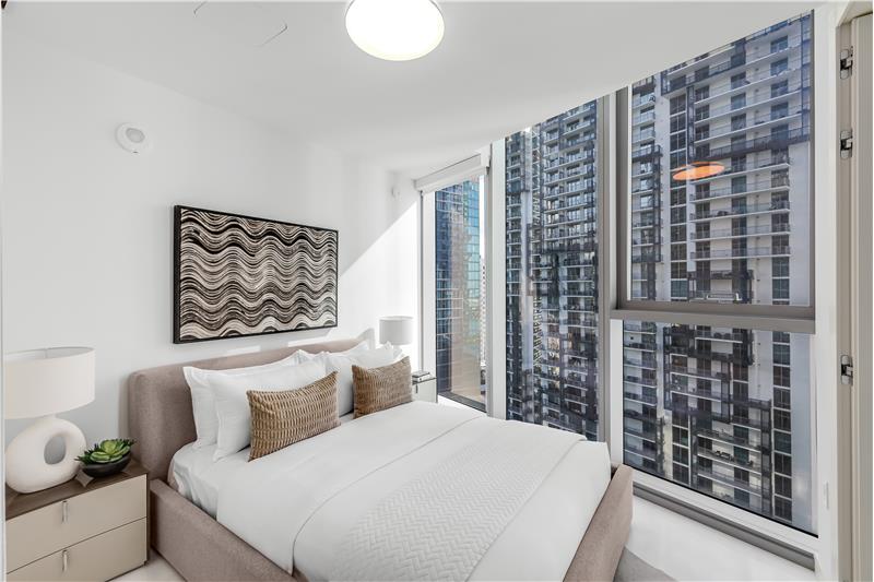 Electric Blinds & Closet Build-Outs in EVERY ROOM. Be the first to live in this brand-new 3-bed, 3.5-bath condo with 2,422 sq. ft. of modern space. This residence features electric blinds and custom closet build-outs in every room, offering stunning views from every angle—open concept kitchen with Gaggenau appliances, separate wine fridge, and large island. Enjoy a HUGE 400 SF balcony overlooking the Miami skyline and Biscayne Bay. The building features private elevators, two parking spaces, and storage facilities. Exclusive amenities span four stories, with fitness centers, theaters, pools, l