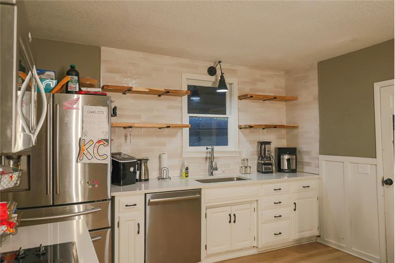 Step into the charm of this beautifully updated 1900 ranch-style home, perfectly poised for entertaining family and friends this football season! Nestled on a desirable corner lot, this rare find welcomes you with a spacious covered front porch, an ideal spot to gather and greet neighbors. Inside, the open floor plan is tailor-made for hosting, allowing seamless interaction between the kitchen, dining, and living areas. The kitchen is a chef’s dream, featuring sleek new quartz countertops, modern newer appliances, and brand-new kitchen cabinets—the perfect blend of style and functionality. F