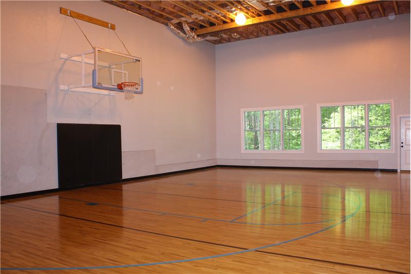 EXECUTIVE HOME FOR THE SPORTS LOVER! INCREDIBLE indoor basketball/volleyball court with separate exercise area. 1st floor in-law suite - wheelchair accessible. Refinished hardwoods most of main floor. Chef's kitchen with HUGE island/bar counter, granite, gas cook top, Thermador SS appliances including professional size REFRIGERATOR. Spacious family room with built-in bookshelves & gas fireplace. Great mudroom! HUGE unfinished 3rd floor attic. Covered porch with built-in gas grill overlooking flat backyard with wooded view. WOW!
