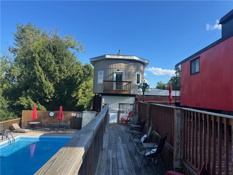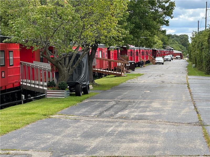 Perfect Spring & Summer Lake Geneva getaway. 2 recently remodeled railroad cabooses were built 1938 put together to form 1 unit for a really unique experience. Making this into a unique condo experience. Unit features 2 living rms/bdrms, kit w/dining area, full bath spacious kit a lrg new rear deck for your enjoyment & entertaining. Condo complex includes Heated outdoor pool & clubhouse. Monthly condo dues include heat, electric, water & sewer. Walking distance to downtown Lake Geneva & has access walking trails. Heat and A/C combo units in each caboose. Complex open May 15 to Oct 15.