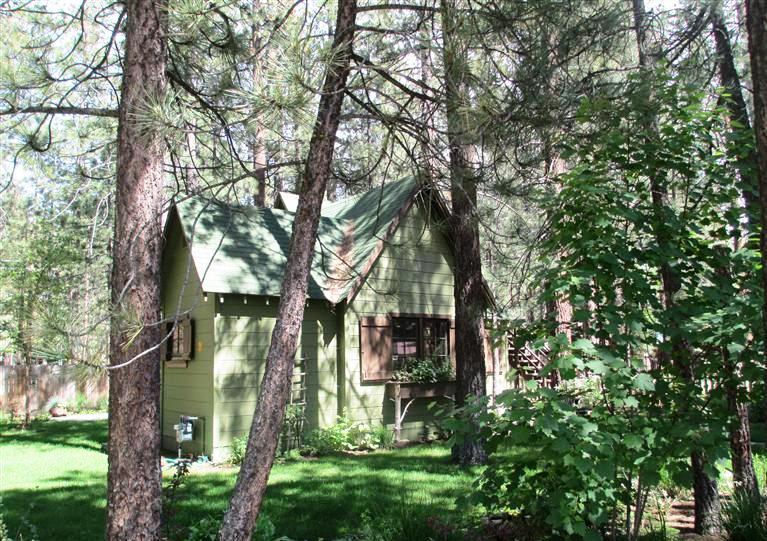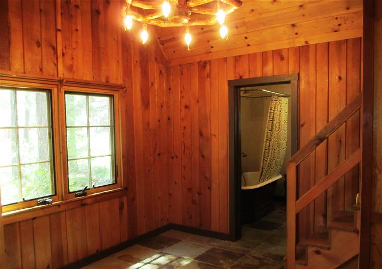 The ultimate unique, special cabin is truly one of a kind and tucked away on a peaceful and private double lot just a few blocks to the Lake. It has one bedroom plus a loft and is located in a magical, garden setting with gorgeous, lush landscaping, beautiful trees, birdhouses and even a swing, which perfectly frame this warm and inviting vintage gem. Custom features include: beautifully upgraded bathroom with cast iron pedestal tub, porcelain sink and slate heated floors; convection gas range, tank less hot water heater, heated slate kitchen floors, natural gas fireplace. Relax and enjoy your