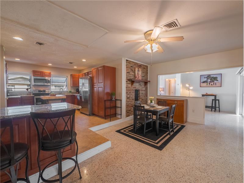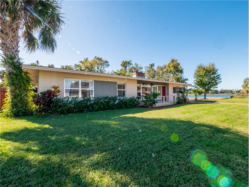 Lakefront Mid-century home for sale! This property is full of improvements with NEW kitchen 2016, Electrical Upgrades 2016 and 2019, NEW washer/dryer hookup, and NEW drainfield in 2018! If you enjoy water sports, this home is for you! Located on a cul de sac with water frontage on Bay Lake, gorgeous sunset views, and a shared boat ramp with your neighbor. Inside you will find mid-century details like exposed block, brick, and original terrazzo floors mixed with updated bathrooms and a totally renovated kitchen with granite counter tops and stainless steel appliances. The living room featur
