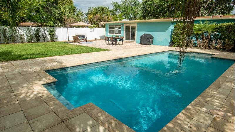 Pool home in Lake Como! This move-in ready homes has been stylishly updated. As you arrive you will notice the well manicured exterior and the shady oak that graces the front lawn. A front porch greets visitors and features mid-century fixtures and front door. Original hardwood floors are throughout the original living spaces and three bedrooms. The dining room is located in the center of the home with french doors that lead into a bonus room. This flex space would also make a perfect home office. Around the corner you’ll find the updated kitchen with granite counter-tops, stainless steel....