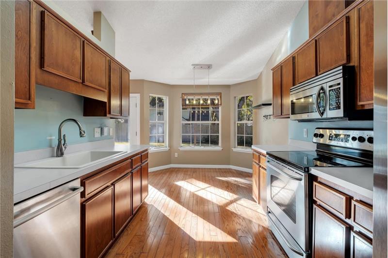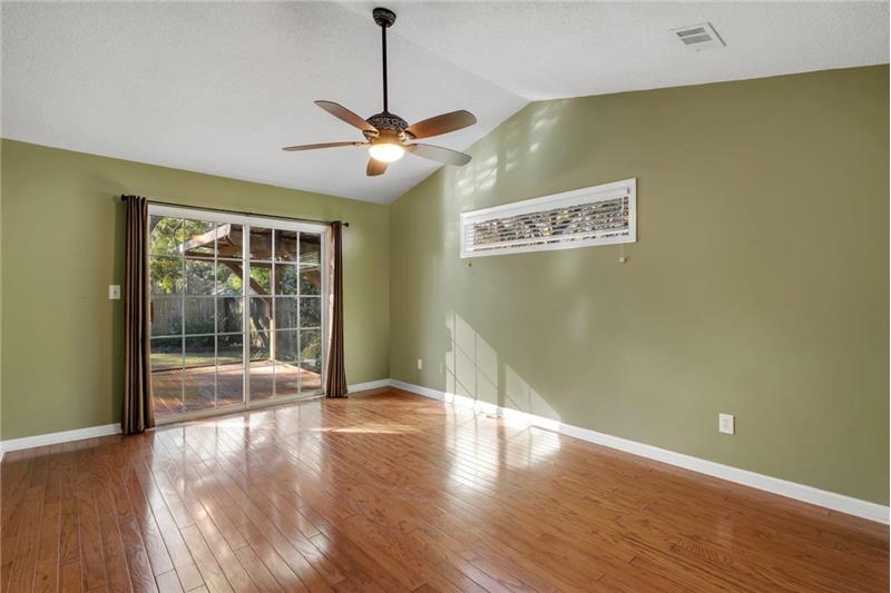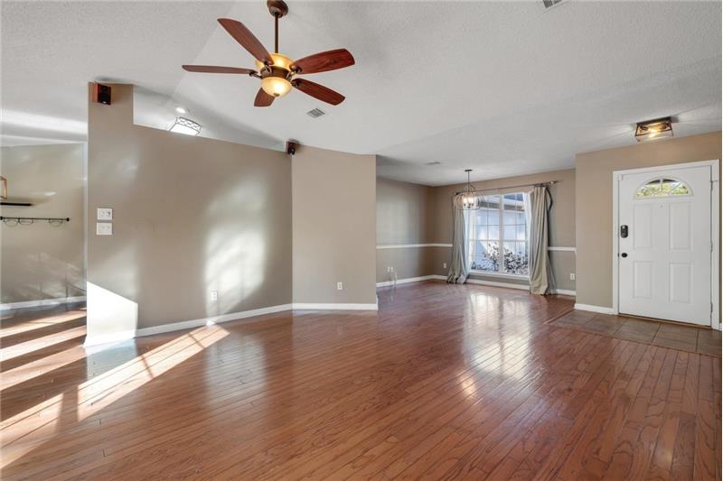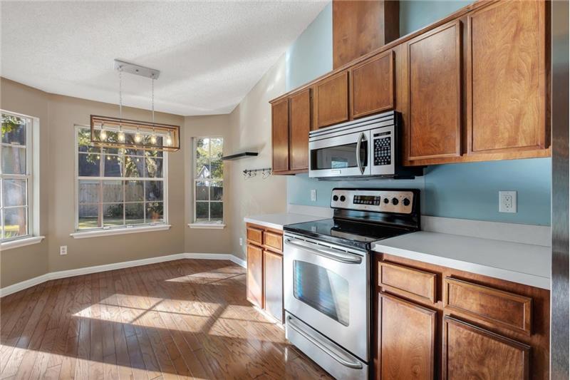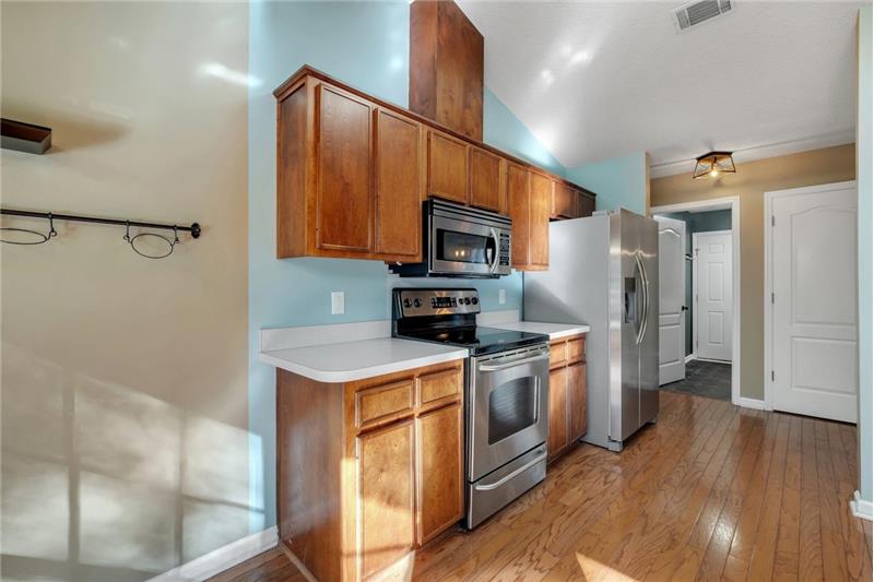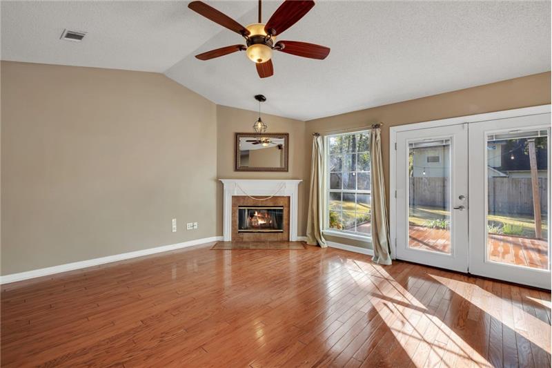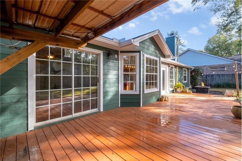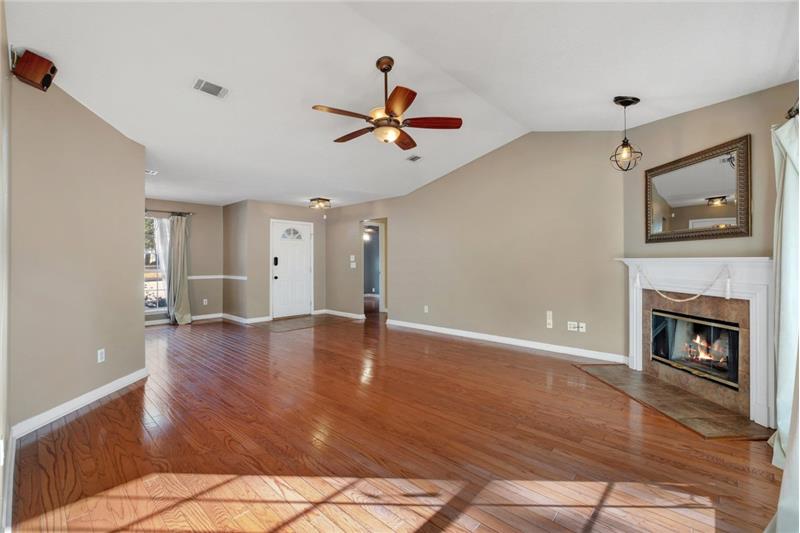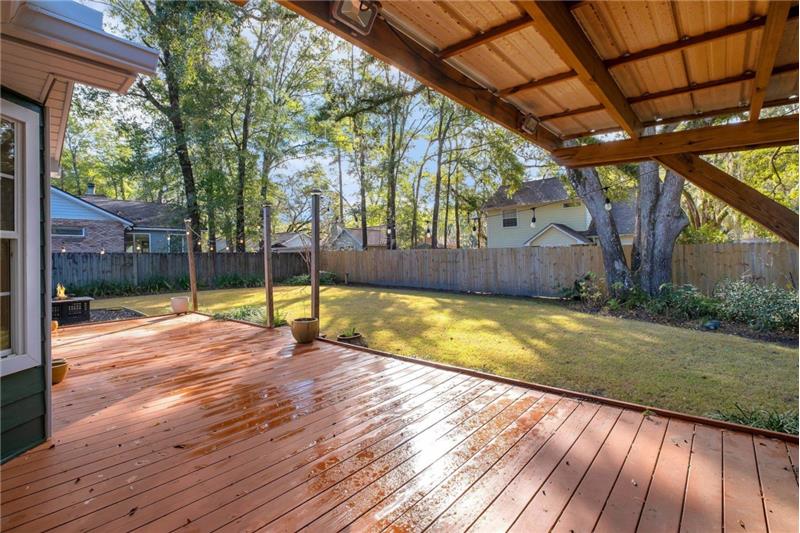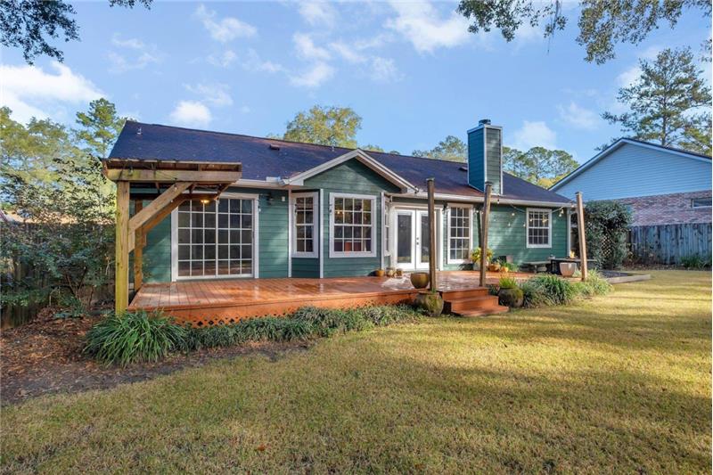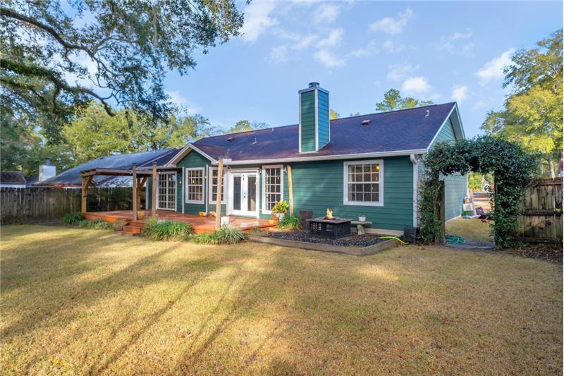 Welcome to this stunning 3-bedroom, 2-bathroom home located on a premium lot in Settlers Creek. The spacious split floorplan offers engineered hardwood floors throughout, creating a seamless flow between the light-filled living spaces. The impressive primary suite boasts a large walk-in closet and vaulted ceiling, providing a serene retreat. Step outside to the beautifully maintained backyard, where you'll find an oversized deck and a covered grilling area ideal for entertaining guests year-round. Additional features include stainless steel appliances, a cozy wood burning fireplace, 2 car gara