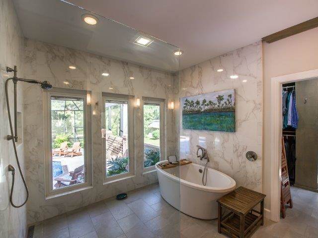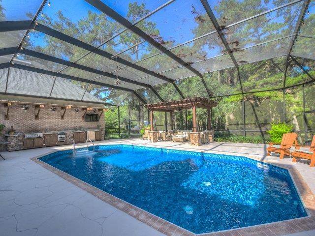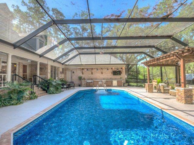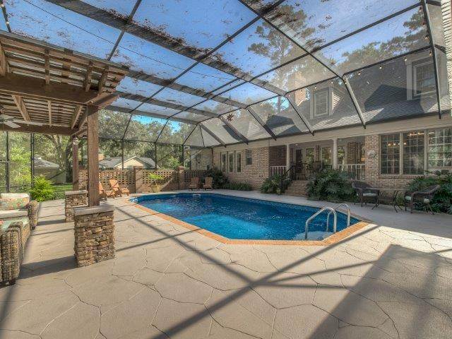 A truly lovely house in a great location, this house is built for residents that like to entertain and love the outdoors. The back yard says it all with a screened & heated pool and outdoor kitchen designed for a cook (including a small refrigerator!). House is on a canal in close proximity to Megginis Arm of Lake Jackson and a long wooded yard runs from the pool to the water front. A spacious paneled office, an artist's room and two fireplaces (one in living room and one in the family room/dining room) add to the grand nature of the home. Large master bedroom has a totally refurbished bath wi