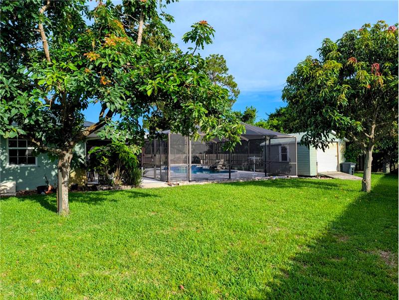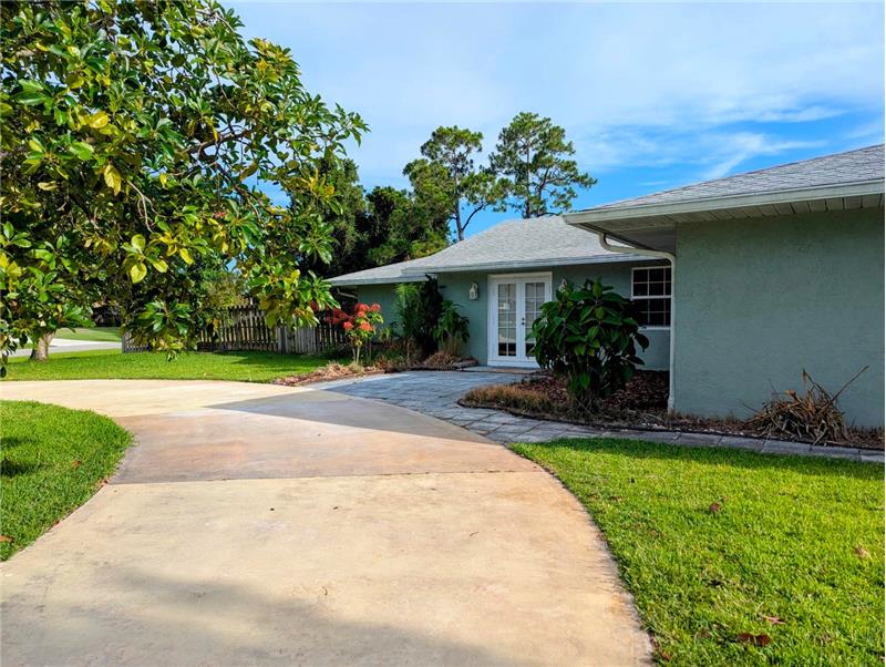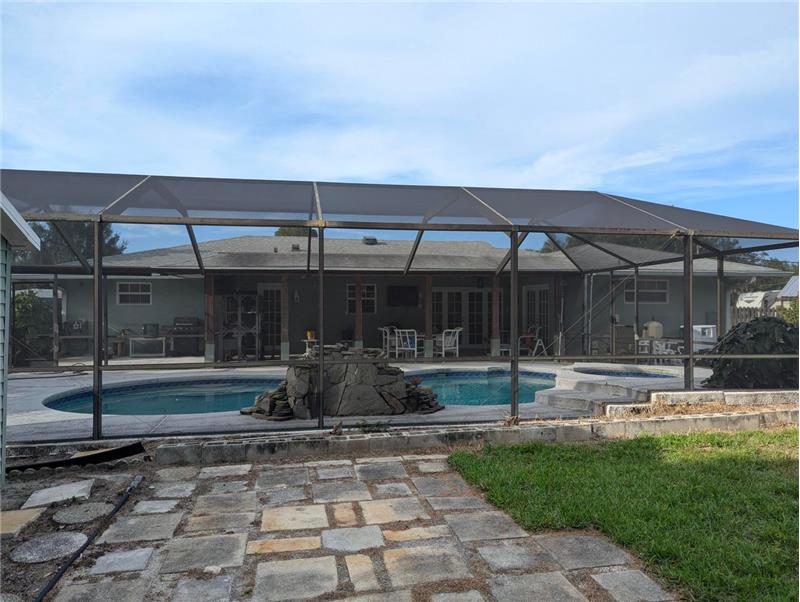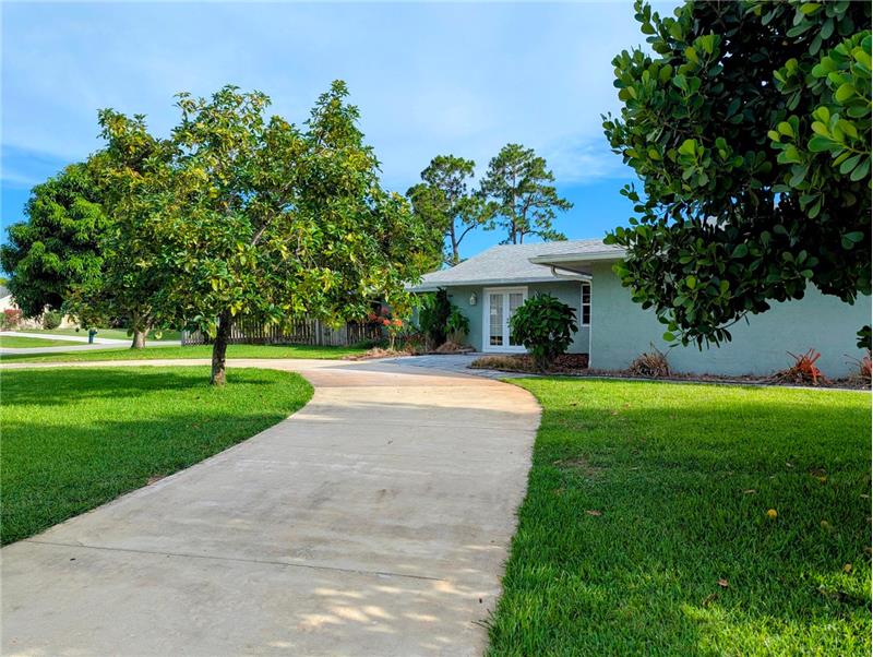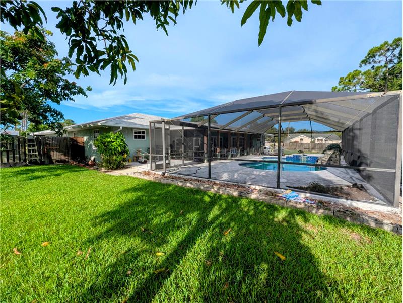 Enjoy Country Living just minutes from all the conveniences! This spacious 3 BR plus den/office, 2 bath, 2 CG home with screen enclosed pool sits on a full half acre corner lot. All impact windows and whole house generator! 2021 Roof! 2019 AC and HWH! Park your boat behind the privacy fence, and be on the water in minutes. Long circular drive and side drive offer ample parking for entertaining. Vaulted ceiling, tile and hardwood laminate floors, updated kitchen and baths, huge patio and screened pool area, large free form pool, storage shed, fruit trees, so much to love! No mandatory HOA fees!