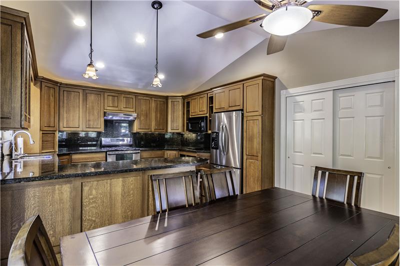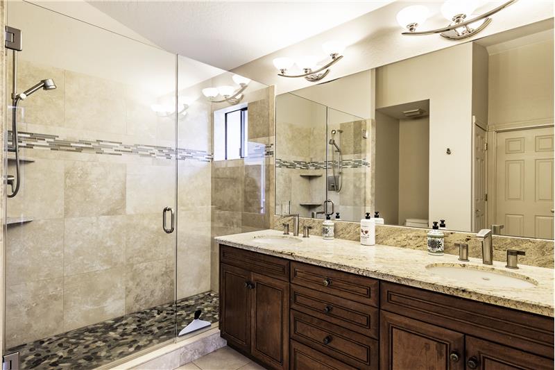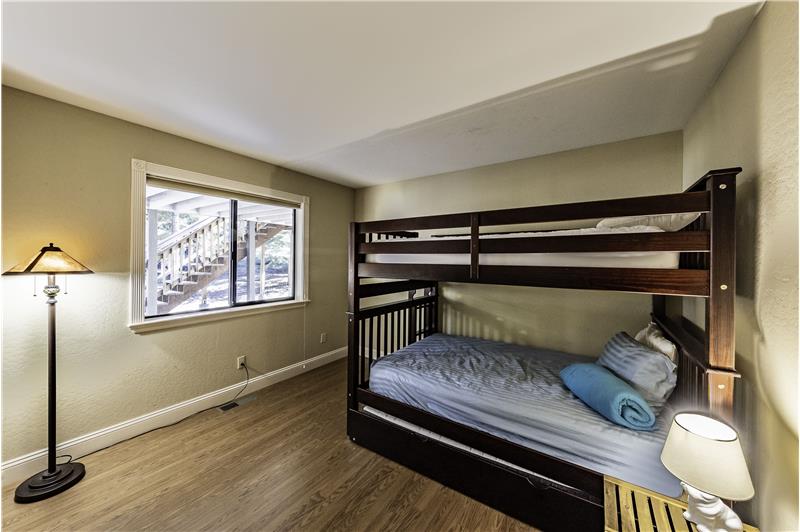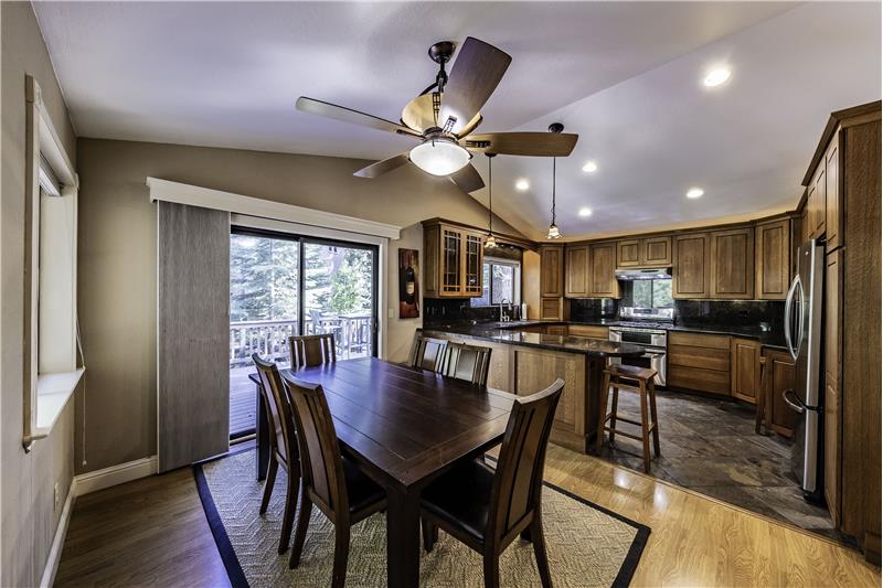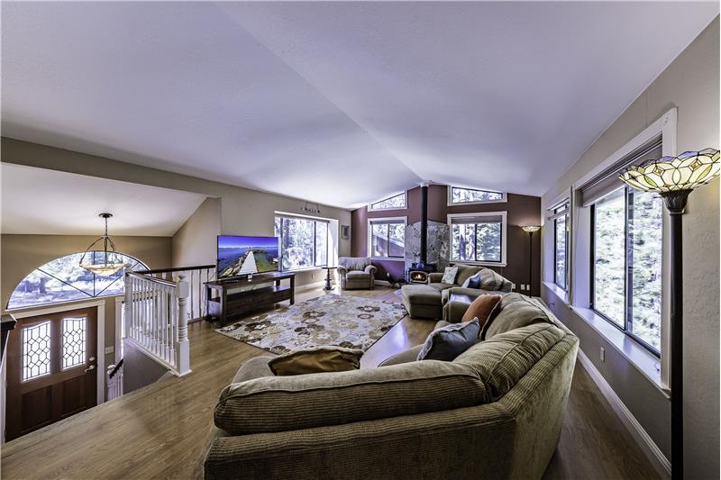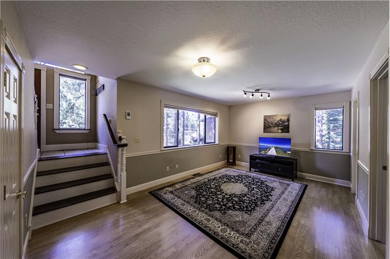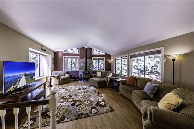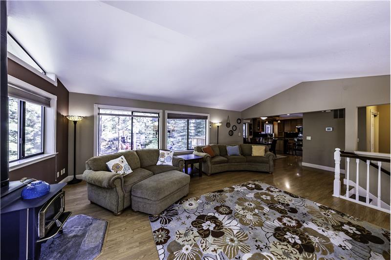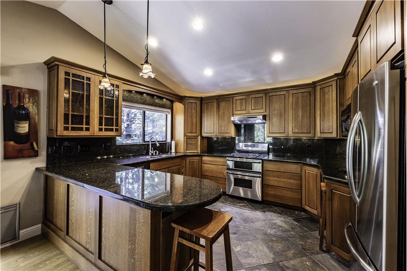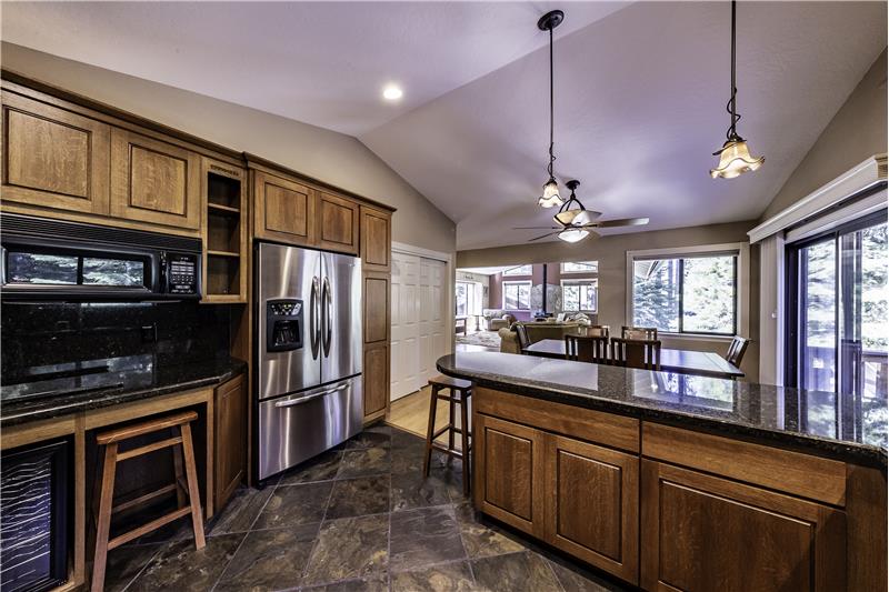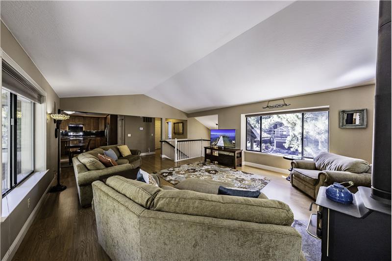 This very classy, contemporary Montgomery Estates home is immaculate and comes fully furnished. Featuring an open floor plan with the kitchen, dining area and spacious living room on the upper level. Vaulted ceilings and large windows throughout the upstairs. The gorgeous kitchen has an abundance of beautiful cabinetry along with granite counters and stainless appliances including a beverage refrigerator. There is a cozy wood burning fireplace in the living room with a lovely stone hearth for chilly weather ambience. The primary bedroom is extra large with a walk in closet.