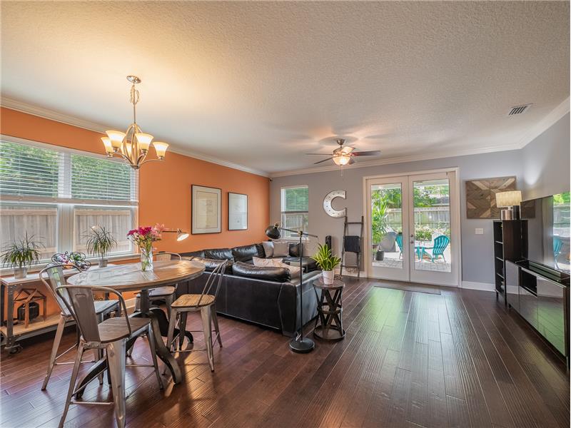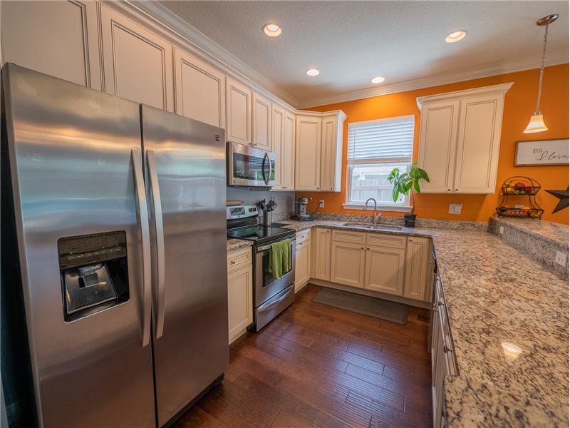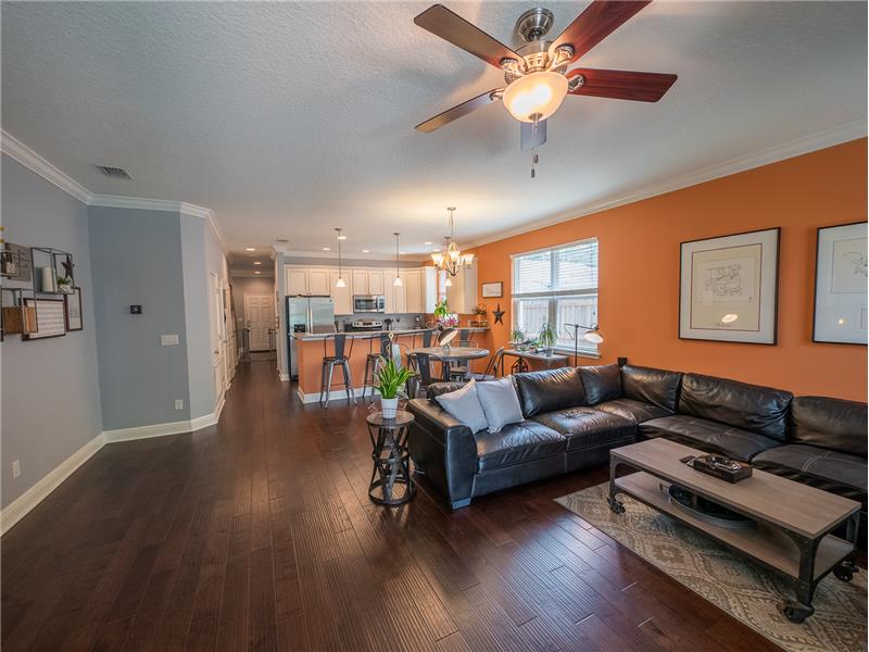 Enjoy a low-maintenance lifestyle with this centrally located immaculate townhome! This home is picture perfect and practically brand new built in 2016. The interior offers stylish finishes, crown molding, and dark hardwood flooring throughout. A paver driveway leads to each unit with a 1 car garage for covered parking. A small front porch provides a covered entrance which leads you inside. The open floorpan offers a half bathroom downstairs, plenty of natural light, and a spacious living area. The kitchen is outfitted with wood soft close cabinetry, granite counter tops, stainless appliances,