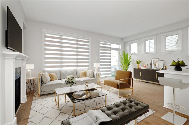 Bright 2022 Tamarack HUDSON end-unit in Cardinal Creek with 2,165 sq ft, open-concept main floor, spacious kitchen, 3 beds, 3 baths, finished basement, and steps to parks, trails, transit, and amenities.