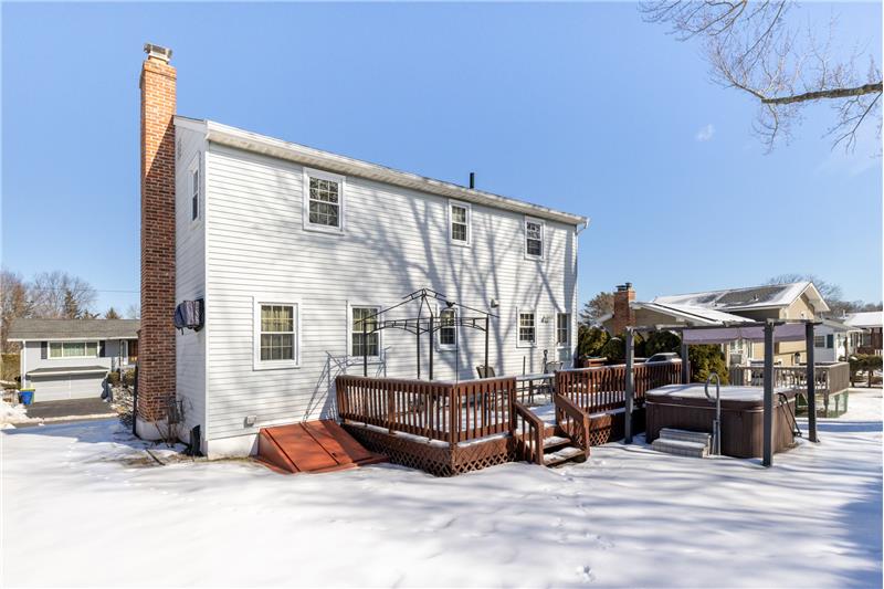 Spacious Center Hall Colonial in Town Plot area. Formal living room with gas fireplace, large eat-in-kitchen, formal dining room with hardwood floors, and half bath are on the main level. On the upper level, there are 4 bedrooms with ample closet and storage space, and a full bath. Large full basement with Bilco door walks out to the partially fenced in backyard with shed. Basement is bone dry and has sump pump, new 60-gallon hot water heater and gas furnace. Updated windows throughout. Convenient location, close to lots of amenities.