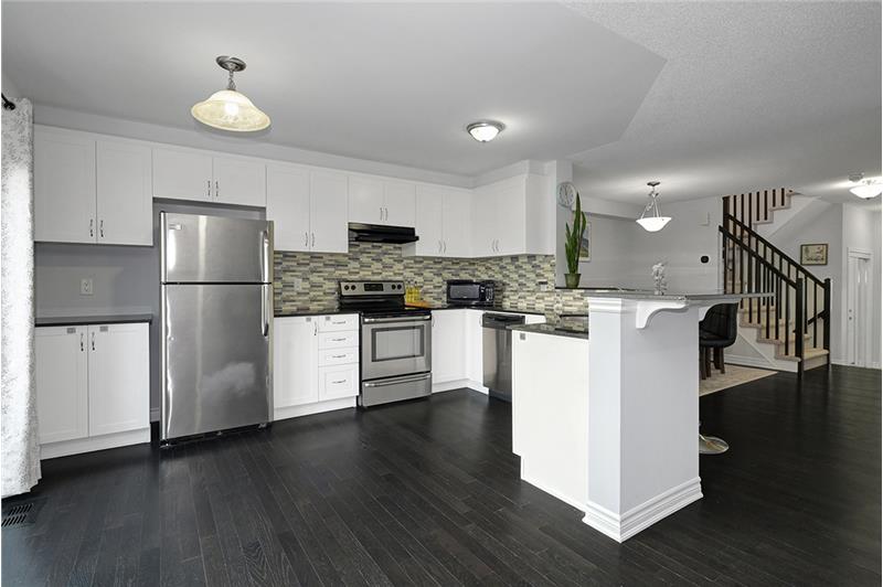 Stunning 3+1 bed home in Fairwinds, Stittsville! Walkout lower level, no rear neighbours, open layout, luxe kitchen, hardwood, spa ensuite, 2nd floor laundry, finished basement & stone patio.
