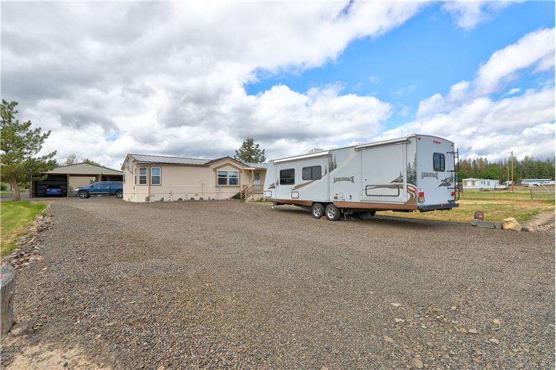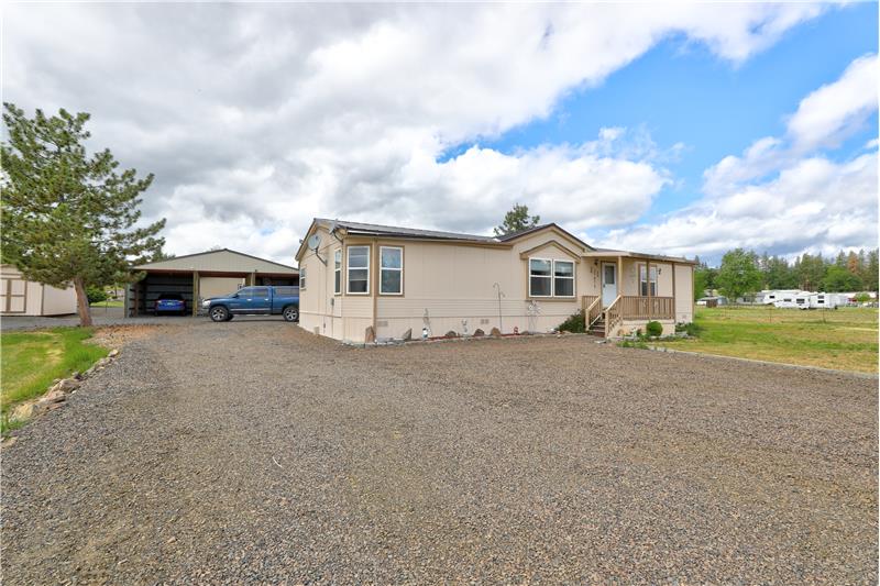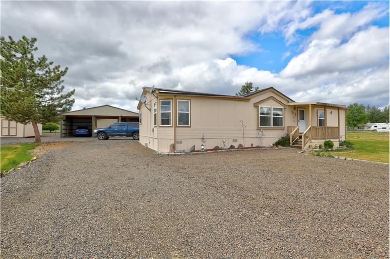 Peaceful Country Living. Welcome to this well-maintained 1997 manufactured home nestled on 1.12 acres in scenic Wamic, OR—just minutes from Pine Meadow Golf Course and the recreational paradise of Pine Hollow Reservoir. This 3-bedroom, 2-bathroom home offers comfortable living in a serene, rural setting. The property is perfectly set up for outdoor enthusiasts and those seeking space, featuring a three-bay carport, multiple storage sheds, and a dedicated RV hookup. With plenty of room for parking and storing your toys, it's ideal for full-time living or a weekend retreat. Enjoy the beaut