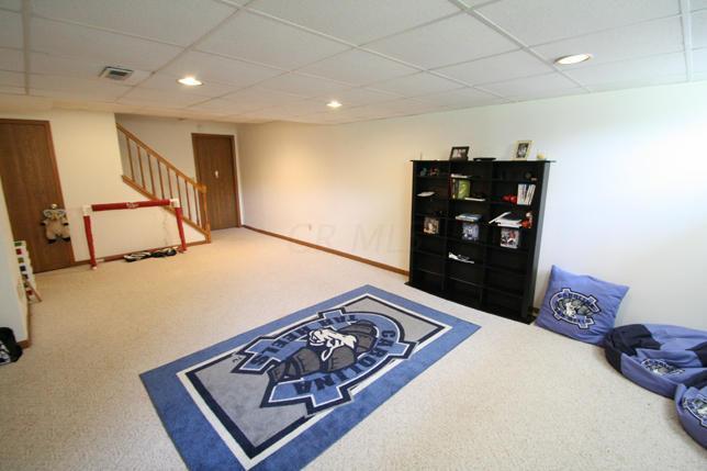 Hilliard Schools and PLENTY of living space in this 3468 sq ft home. Offering huge mature treed yard with entertainment size deck, basketball court and screened porch. Finished lower level includes full bath and office/den plus storage. Vaulted ceiling master has walk in closet and bath w/ jetted tub. All bedrooms w/ plenty of closet space. Regal size great room w/ gas log fireplace. Spacious kitchen, breakfast bar and bay window dine in area. New dishwasher & new kitchen floor. New hot water tank. Exterior and interior just painted! Close to Scioto River in well established neighborhood.